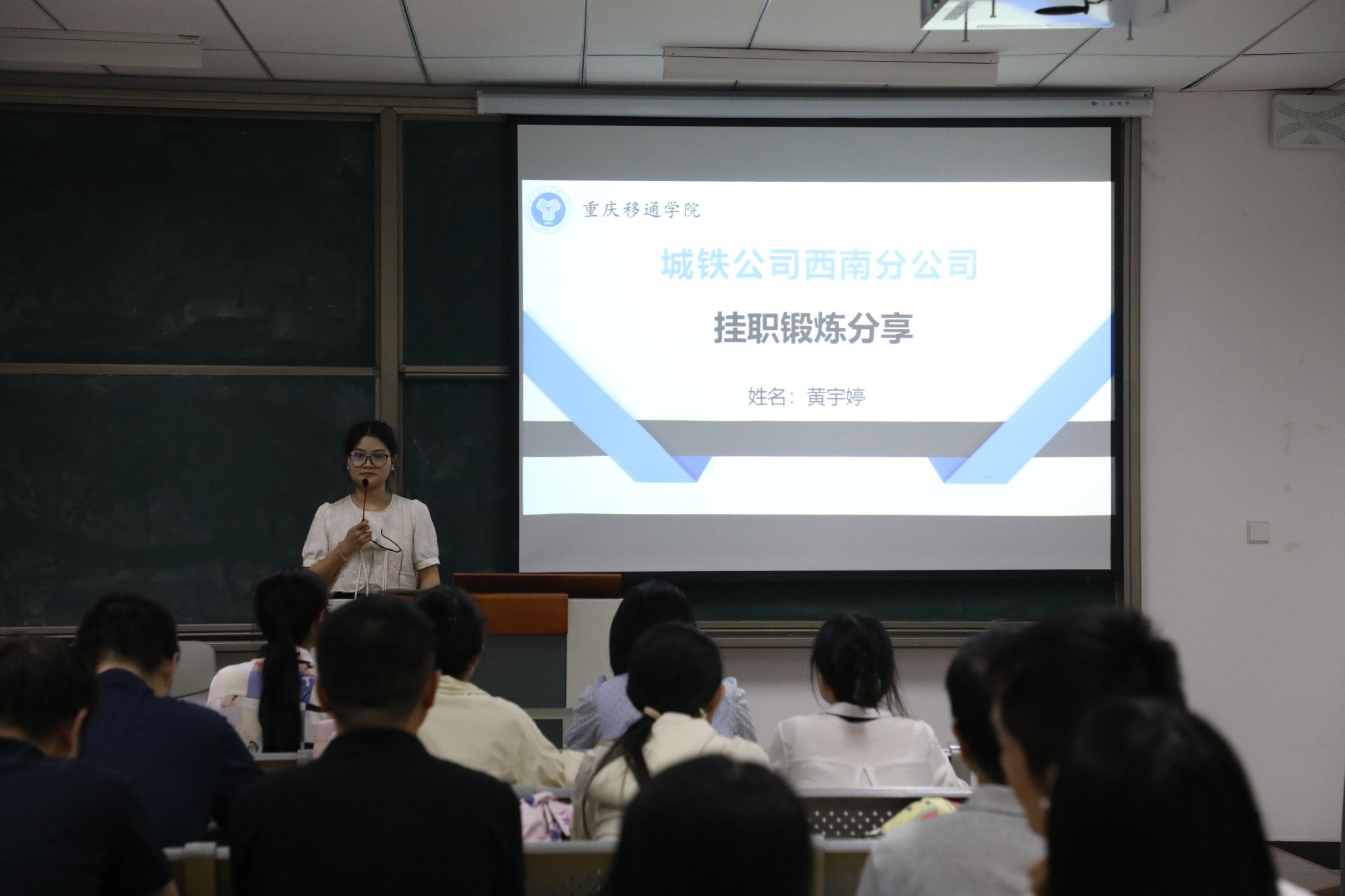 在本次活动中,首先由智能交通教研室的黄宇婷老师进行暑期企业挂职锻炼的汇报与分享。黄宇婷老师暑期通过在城铁公司西南分公司挂职锻炼,深入了解了通信施工各环节,掌握了实操技能,深刻认识到综合联调的重要性与技术复杂性。她表示,计划将所学实务知识融入教学,提升课程实操性和针对性。同时,黄老师强调轨道交通行业对安全的极高要求,呼吁老师们在教学中加强安全教育,培养学生的安全意识。