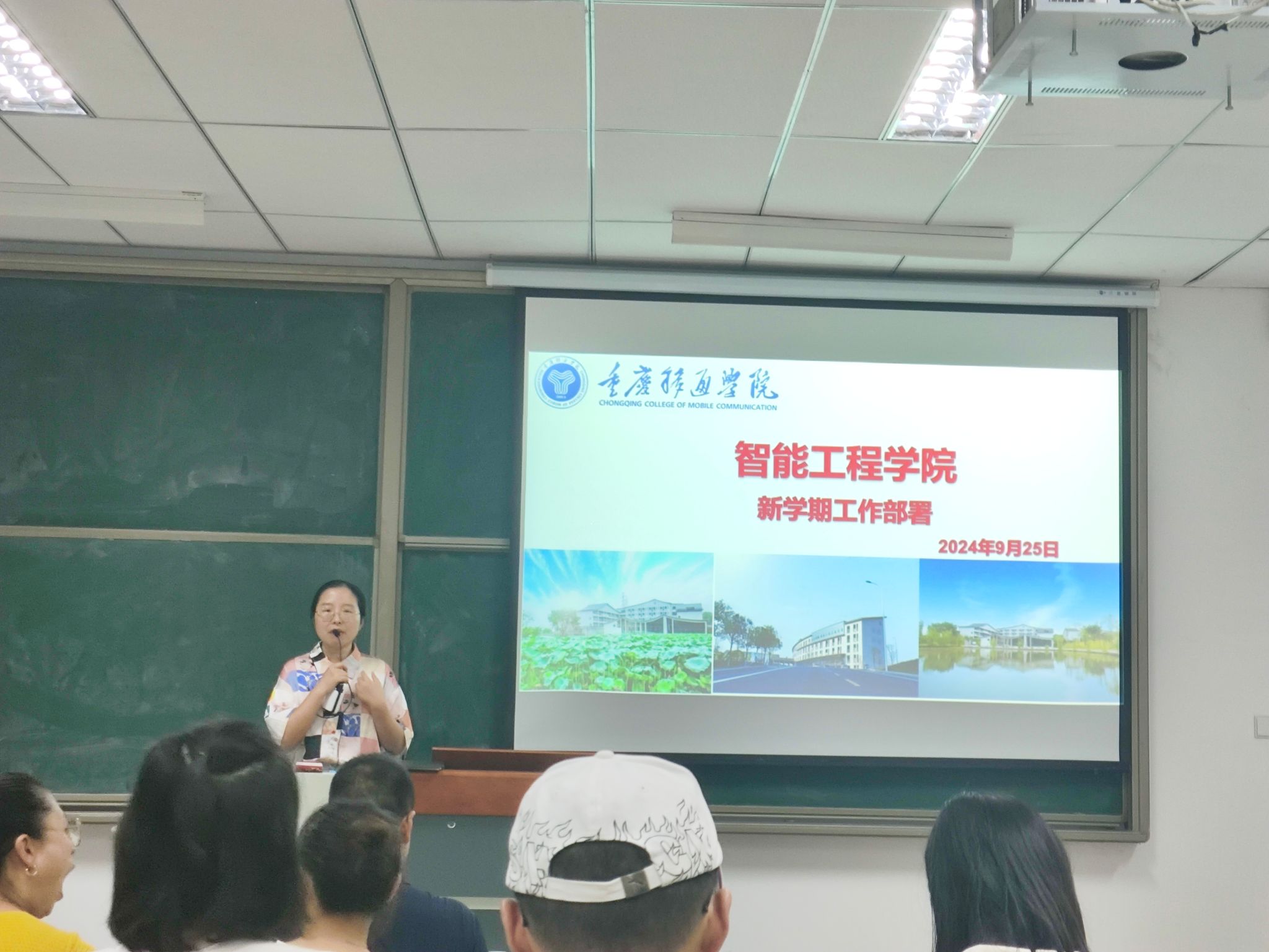 金秋丹桂香,智工新启航,9月25日下午14:30,智能工程学院在9209召开了全院教职工工作部署会议,会议回顾总结了上学期各项工作和已取得的成绩,并对秋季学期的教科研及学生工作进行了深入细致的规划与部署。会议由智能工程学院教学副院长李洁主持,学工副院长祝玮和学院全体教职工参会。