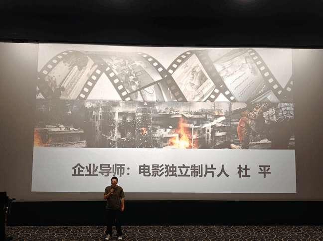 随后,各实践项目的导师上台进行致词。企业导师兼电影独立制片人杜平老师,分享了自己作为电影人的经验和趣事;企业导师兼资深电影人肖异老师,对目前电影行业的行情进行了简单的剖析,表达了对于同学们思维的看好和后期与同学们合作的期待。项目导师代表梁紫薇老师,在现场回忆了自己学生时期电影创作的经历,表示了自己与同学们创作的开心,十分期待后期与同学们的合作。学员们对于和老师们的合作也充满了憧憬,对往后的学习生活充满期待。