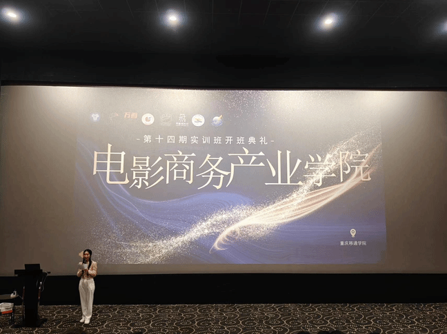 10月9日下午万画影城2号厅内星光熠熠,电影商务产业学院第十四期实训班开班典礼缓缓拉开序幕。为此次仪式的顺利开展,学院老师及同学进行了充分的准备工作。活动伊始,由主持人进行致词,介绍本次到场嘉宾,其包括电影商务产业学院副院长、项目导师和企业导师等。全体电影商务产业的师生共同见证了这意义非凡的时刻。