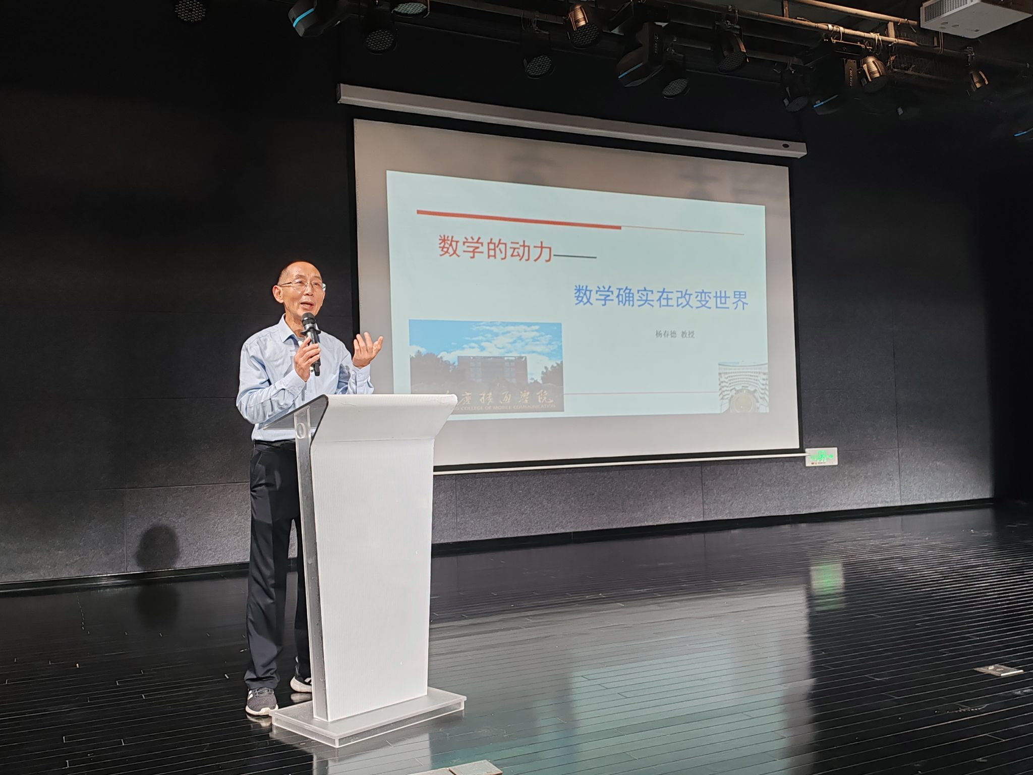 为激发大一新生对数学的浓厚兴趣,全面提升其数学素养,架起数学和专业课程的桥梁,2024年10月9日下午,通信与信息工程学院特邀重庆移通学院数理教学部主任杨春德教授为同学们开展了“数学的动力——数学确实在改变世界”主题讲座,讲座在六度空间黑匣子剧场举行。李文娟院长出席活动,由辅导员罗观老师主持,学院大一辅导员老师和新生代表参与。