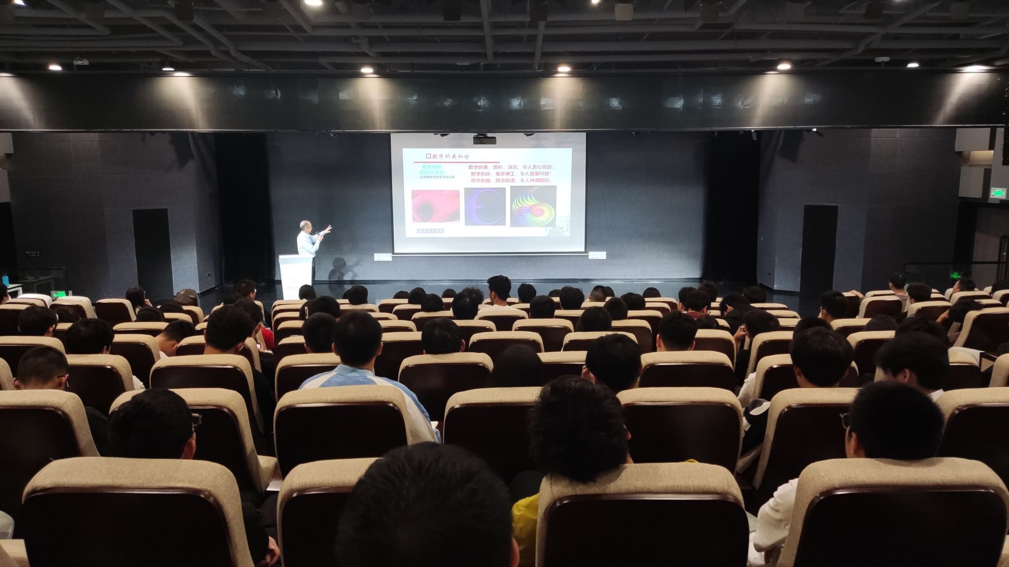 讲座伊始,杨教授以“数学的美与妙”巧妙开篇,引领同学们深入思考。从神奇的莫比乌斯曲线到绚丽的四叶玫瑰线,同学们深切体会到数学无处不见、无处不在。