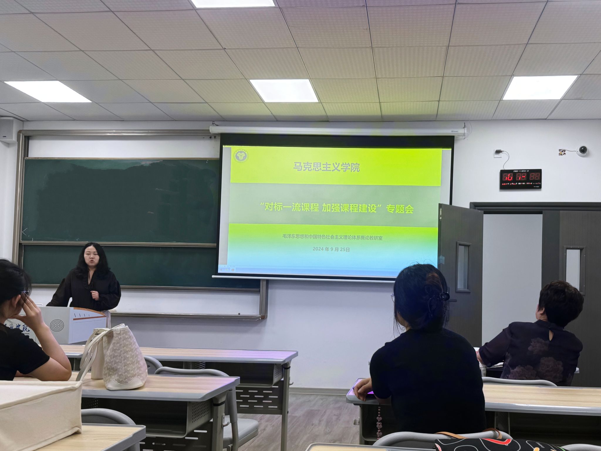 为深入贯彻落实《教育部关于一流本科课程建设的实施意见》文件精神,深化教师对一流课程建设的认识,进一步聚焦内涵建设与质量提升。9月25日下午16时,马克思主义学院“概论”课教研室在4110召开“对标一流课程,加强课程建设”专题研讨会。本次会议由“概论”课教研室主任毕毓璟老师主持,教研室全体老师参加。