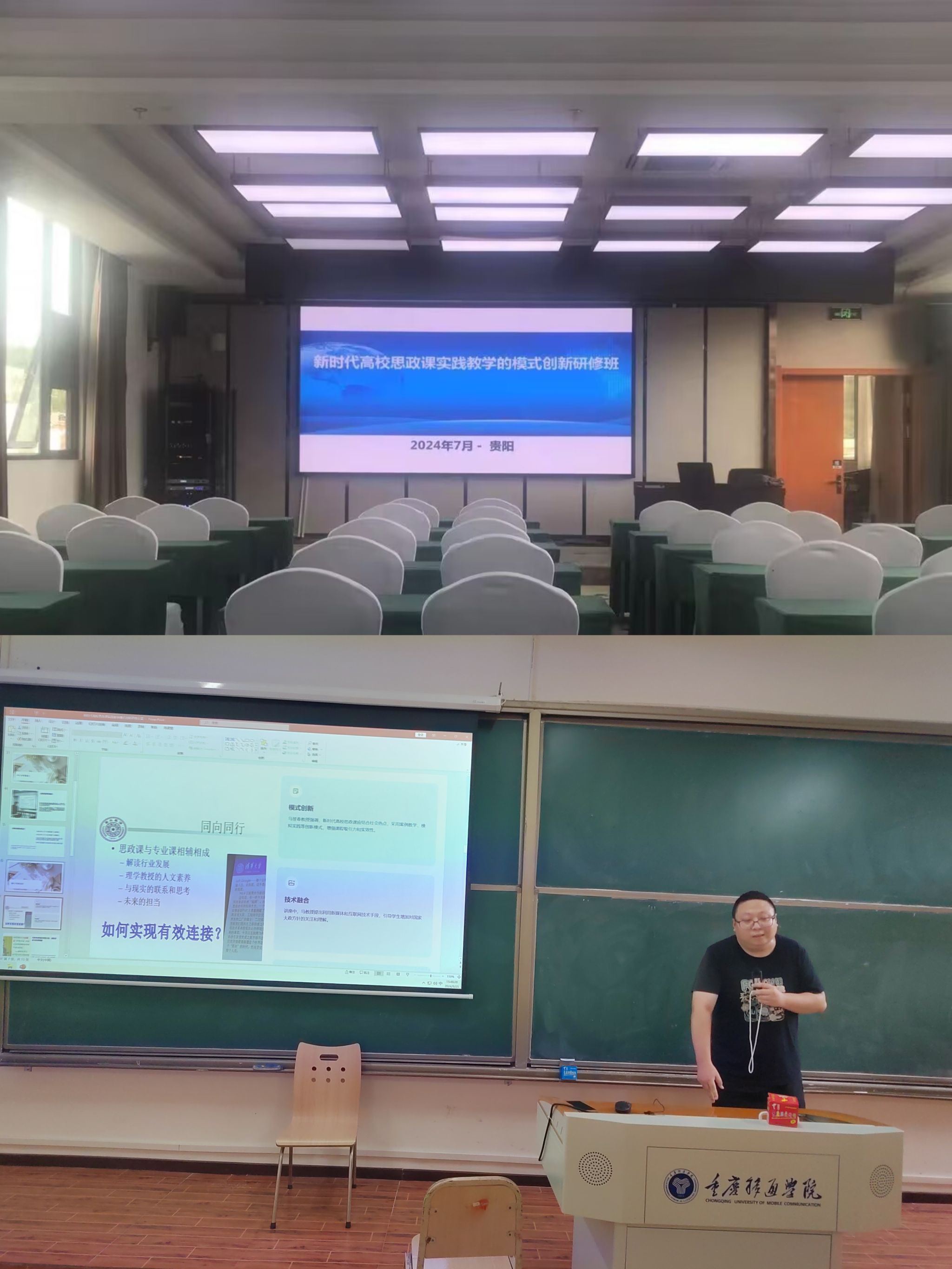 曾林老师提出,新时代背景下,高校思政教育面临着前所未有的挑战与机遇,必须不断创新教学模式,以适应社会发展需求,培养具有社会责任感和创新精神的青年人才。曾林老师首先介绍了研修的背景与目的,强调了思政教育在立德树人中的重要作用,以及课程思政深度融合的必要性。随后,他回顾了研修的日程安排与亮点,包括清华大学马昱春教授和冯务中教授的专题讲座,以及贵阳市花溪区红色文化陈列馆、戴安澜将军衣冠冢和青岩古镇的实地考察活动。在讲座部分,曾林老师重点介绍了马昱春教授的实践教学模式创新的具体方法,包括结合社会热点采用案例教学、模拟实践等创新模式,以及利用新媒体和互联网技术手段提升教学实效性的创新思路;介绍了冯务中教授的专题讨论,分享了通过具体案例分析,展示了思政课教学改革的前沿实践和成功经验。实地考察部分,曾林老师分享了贵阳市花溪区红色文化资源的教育价值和实践意义。曾老师提到:“戴安澜将军衣冠冢作为爱国主义教育基地,深刻展现了抗日名将的爱国情怀和高尚情操,激发了学生的民族自豪感和历史使命感。青岩古镇的丰富历史文化底蕴和多样民族文化,则为文化与教育的融合提供了生动素材,增强了学生对传统文化的理解和认同。”