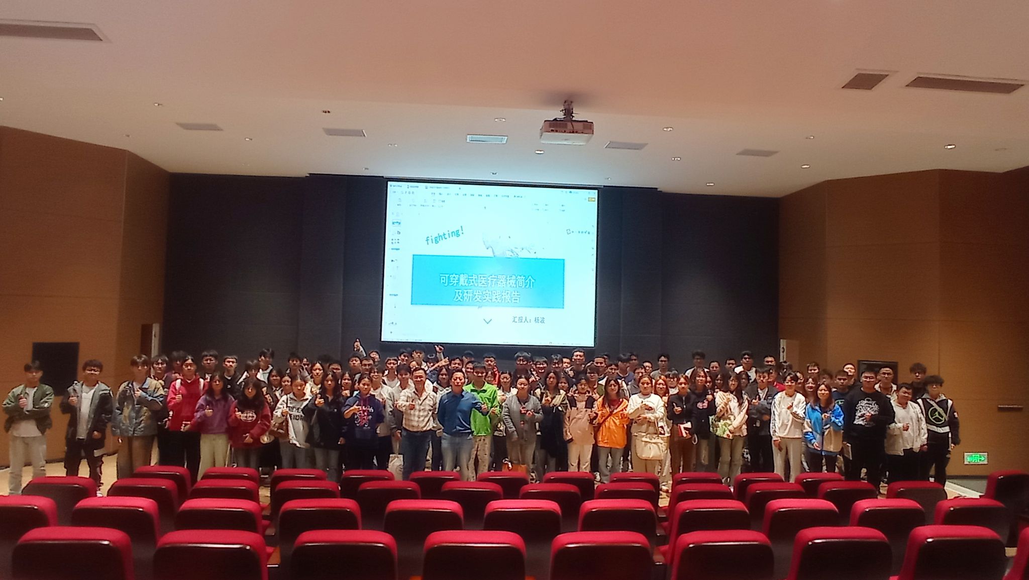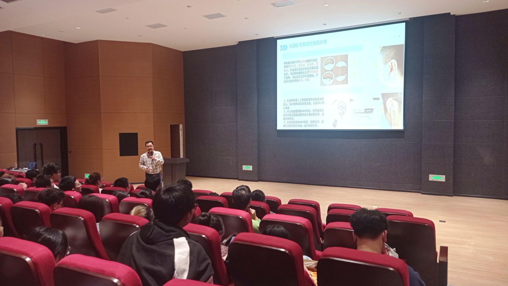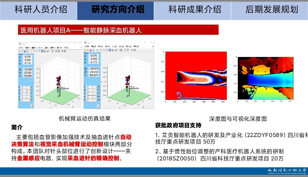 杨教授首先介绍了团队的情况,分别从科研团队、研究方向、科研成果、后期发展规划四个方面介绍了“物理场生物效应及仪器”四川省高校重点实验的研究工作情况。其中重点实验室的项目方向,包括:基于精准时间靶点干预的睡眠治疗仪,医用机器人项目-智能静脉采血机器人,挂耳式耳鸣治疗仪,等学生课题项目。