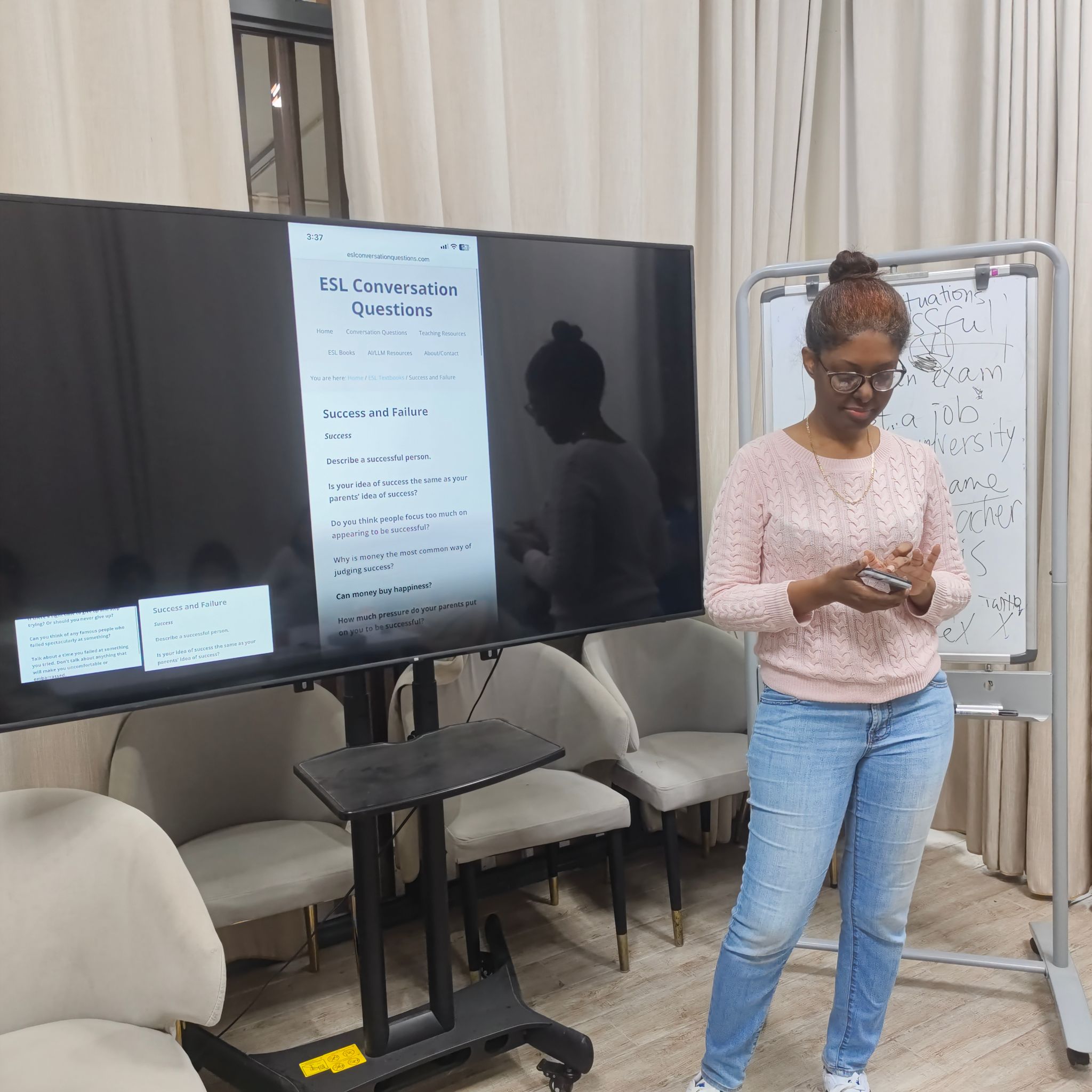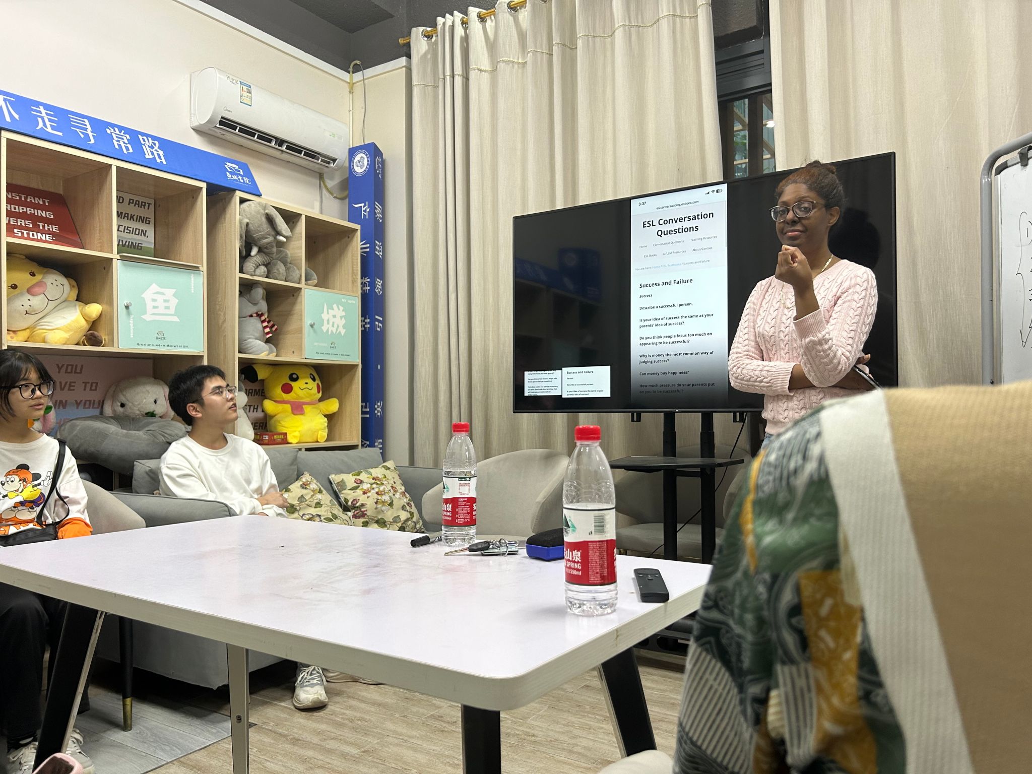 为提升学生的英语口语能力、拓宽国际视野,营造浓厚的英语学习氛围。国际商学院于10月16日在鱼城书院围绕 “Never Give up!“ 为主题开展本期英语角活动,旨在为学生提供一个真实的英语交流环境,提高口语表达能力,同时也为广大师生与外教互动交流搭建了平台。