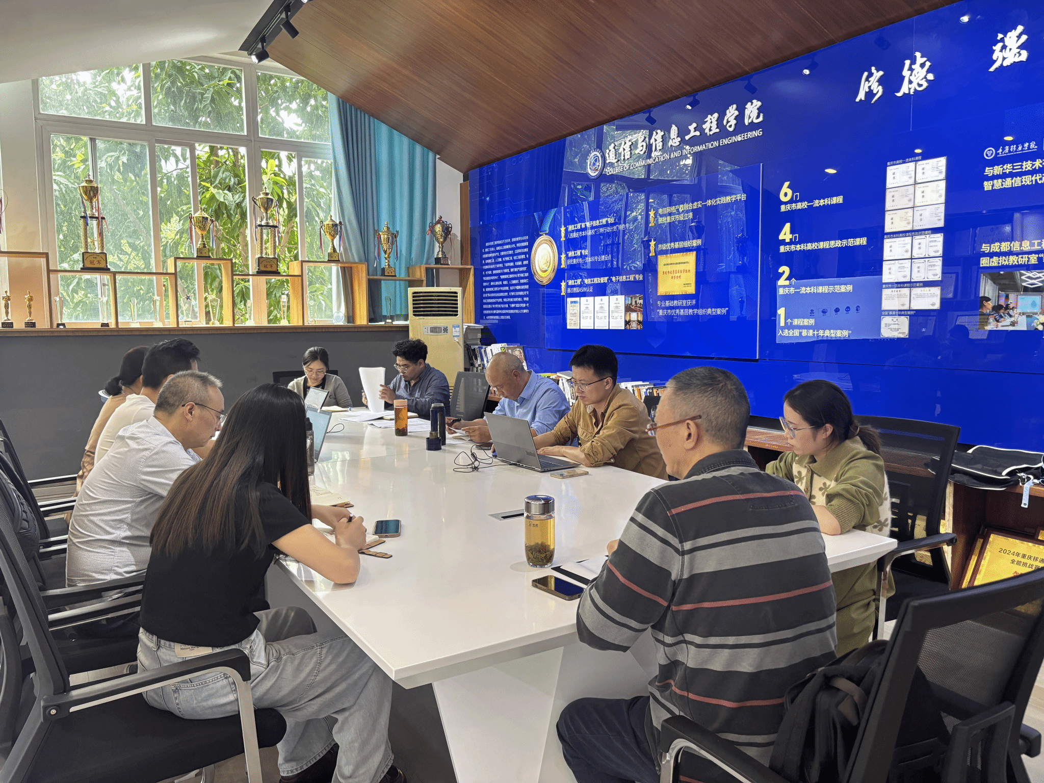 会议开始,通信与信息工程学院教学副院长唐林建简要介绍与会专家:杨波博士(教授)、新华三认证培训中心负责人冉新、重庆推觉科技有限公司技术总工兼项目部长邓军,并概述会议流程:先由各专业负责人阐述方案,随后邀请各位专家针对方案提出宝贵意见。