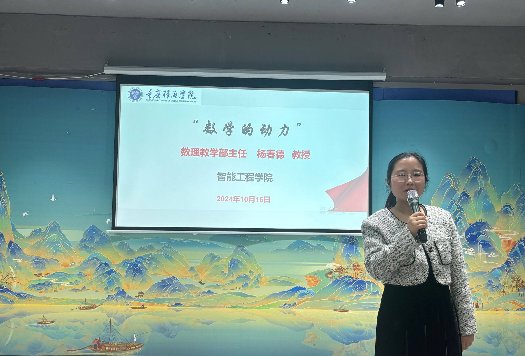为激发大一新生对数学的浓厚兴趣,全面提升其数学素养,架起数学和专业课程的桥梁,10月16日14:00,智能工程学院特邀重庆移通学院数理教学部主任杨春德教授于天空书院长空报告厅开展“数学的动力—数学确实在改变世界”的主题讲座。本次讲座由智能工程学院副院长李洁主持,学院大一新生代表百余人参与本次活动。