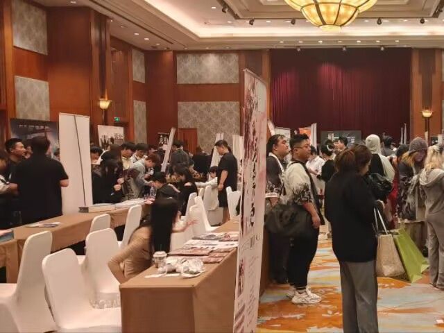 一进入展会卖场,学生们就被精美的展位布置所吸引。各个展位上陈列着各种题材的剧本,从古风仙侠到现代悬疑,从欢乐喜剧到恐怖惊悚,应有尽有。发行商们热情地向学生们介绍着自己的剧本特色,分享创作背后的故事。许多学生驻足在展位前,仔细翻阅剧本简介,与发行商交流讨论,挑选着自己心仪的剧本。