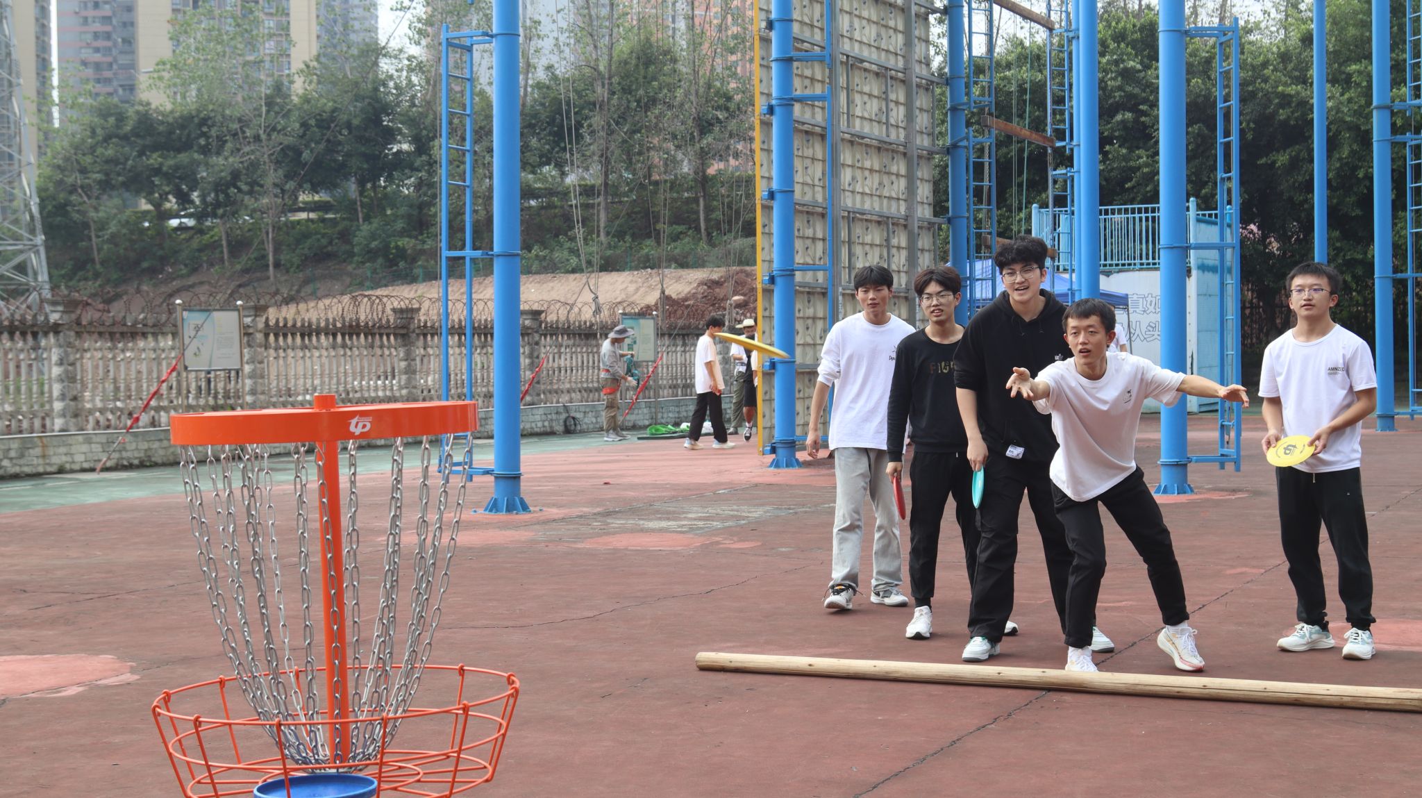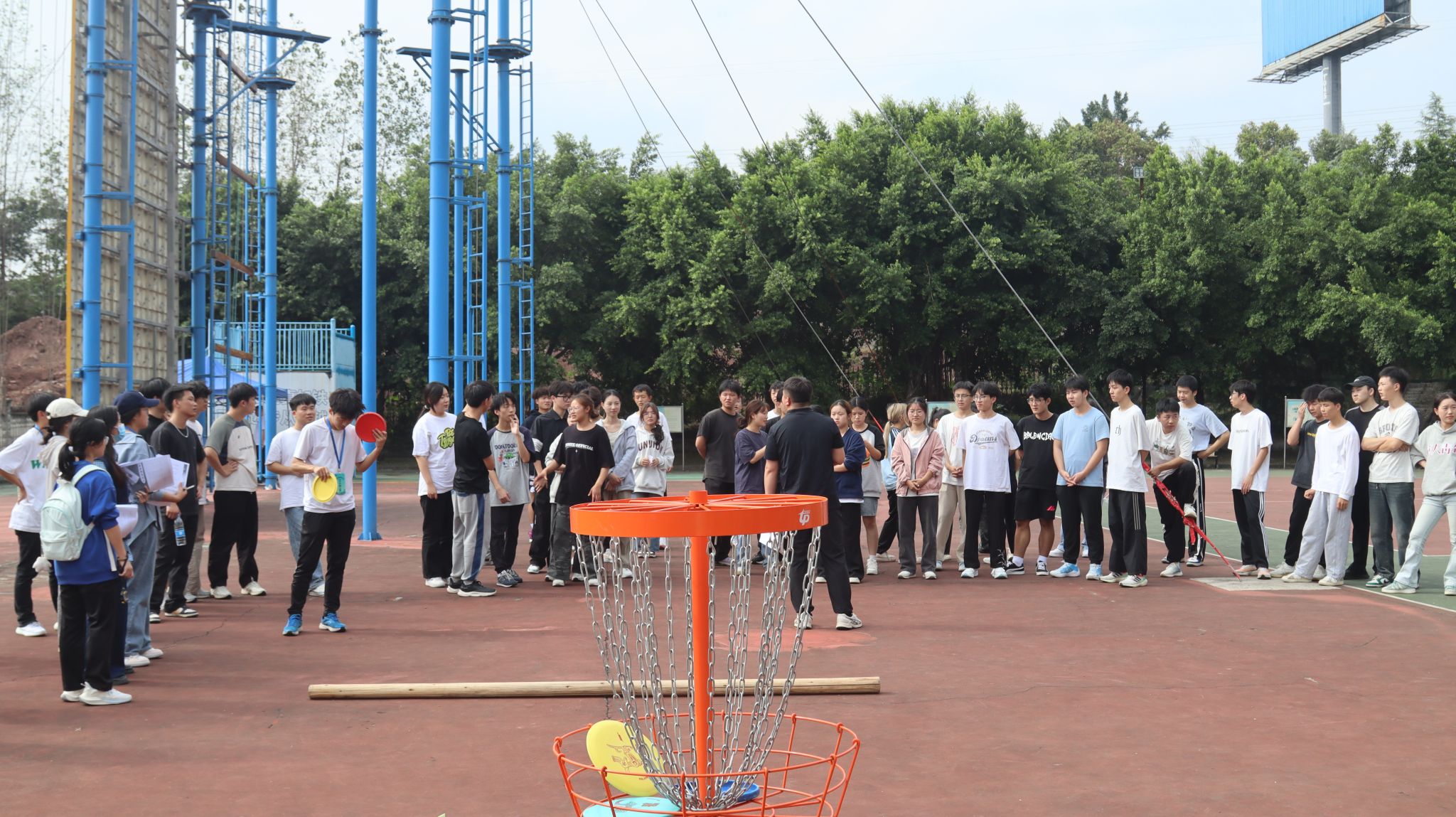 比赛项目包括旋风跑、巨人梯、旱地龙舟和飞盘高尔夫,每个项目都考验着参赛者的团队协作能力和身体素质。