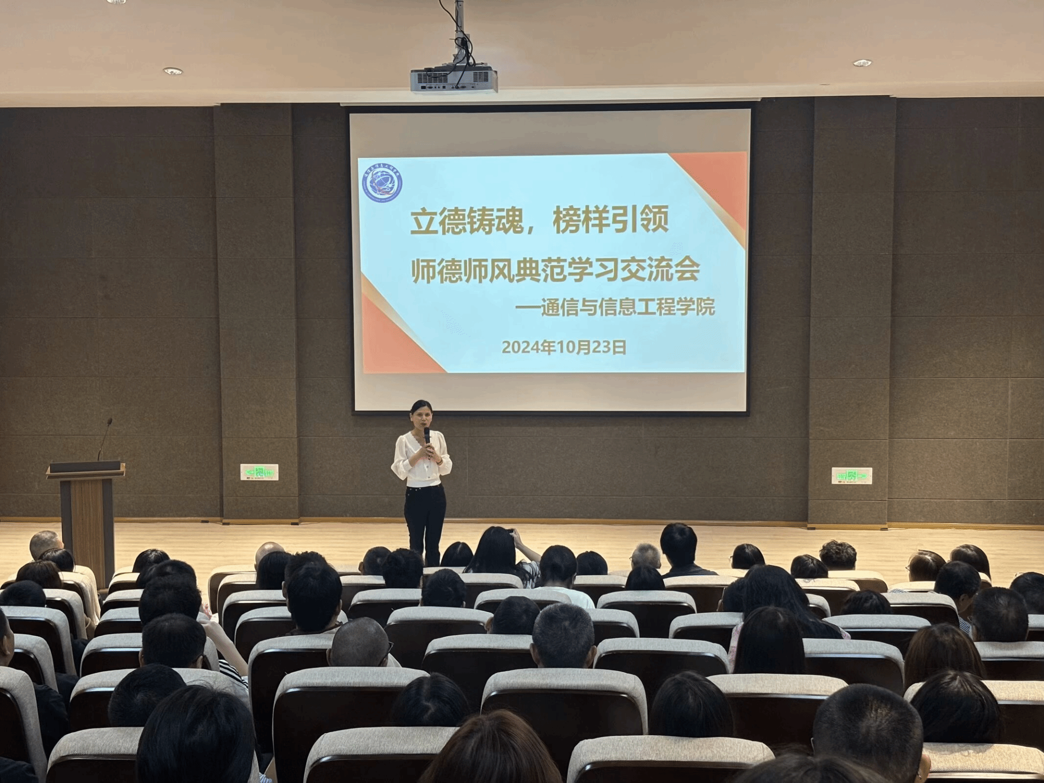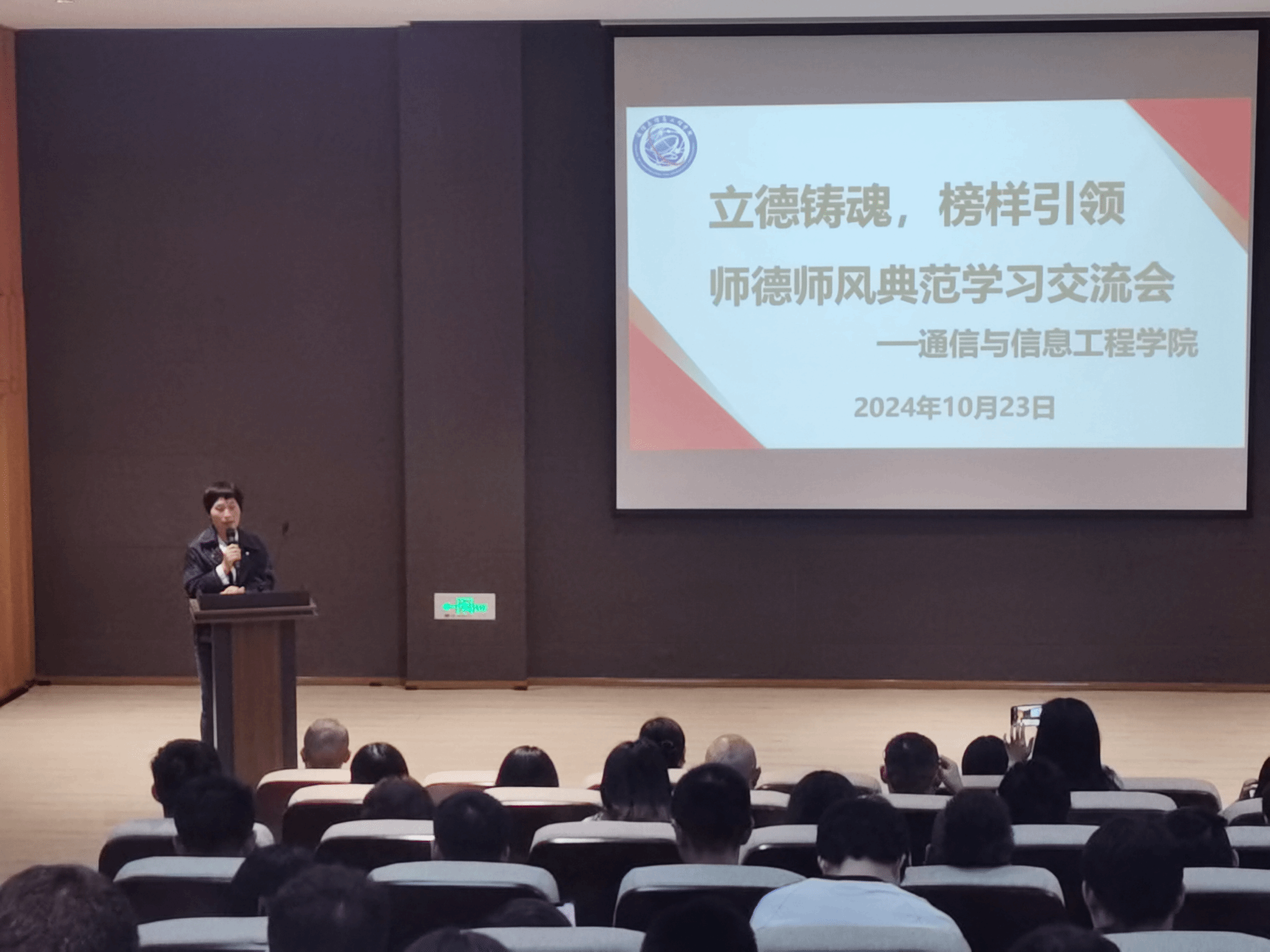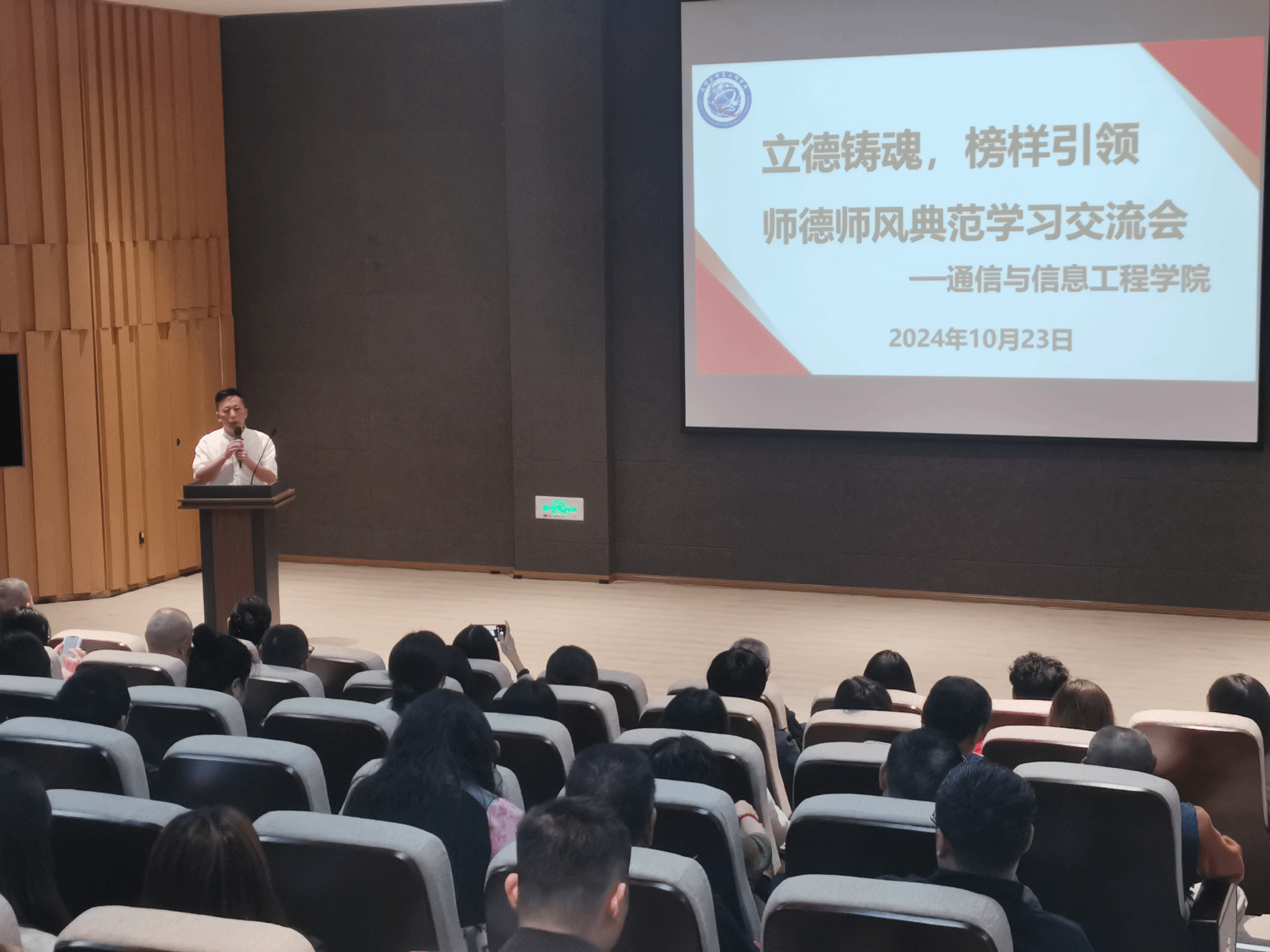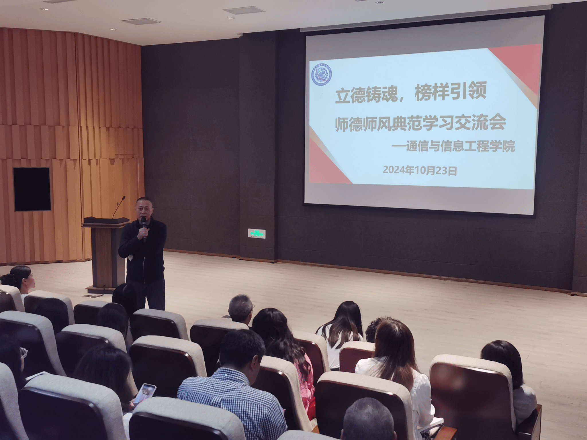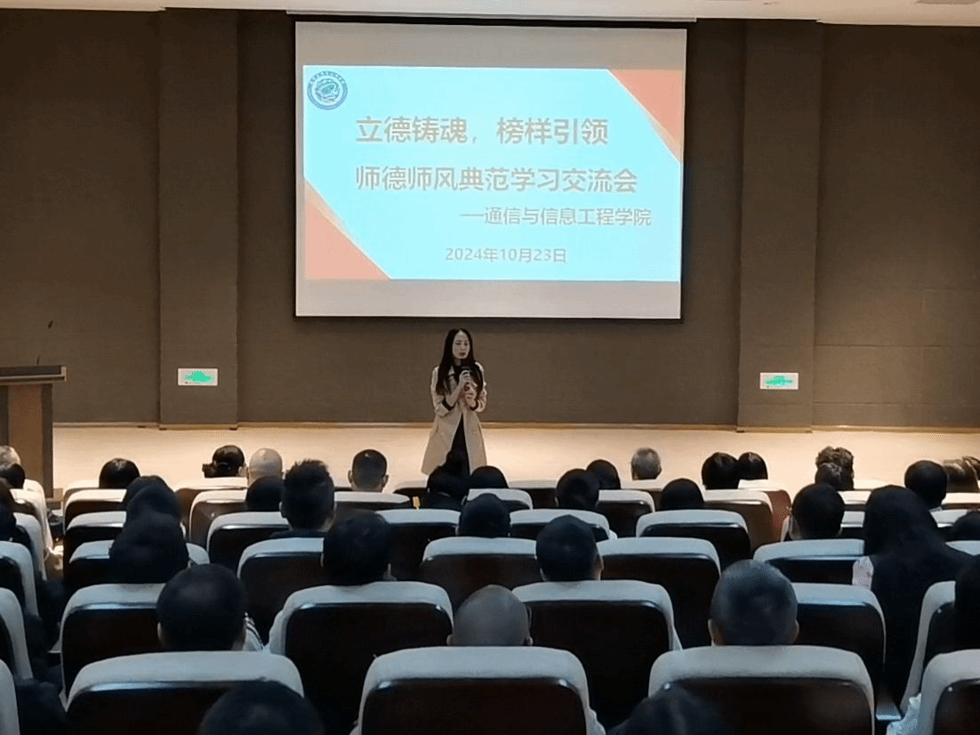 良好的师德、高尚的师风是做好教育的灵魂,为了不断提高学院教师的师德修养,端正价值观,增强创新意识、责任意识,10月23日下午15:00,通信与信息工程学院在六度空间无线多功能厅召开师德师风典范学习交流会,学院全体教职工参会,会议由唐林建副院长主持。