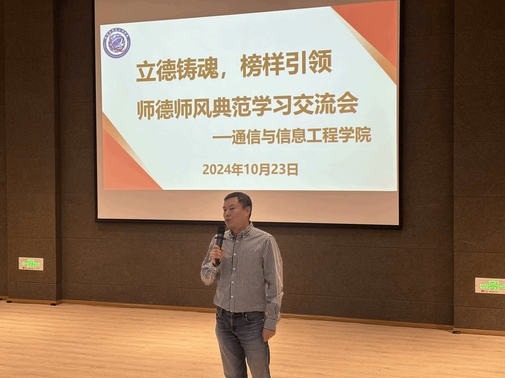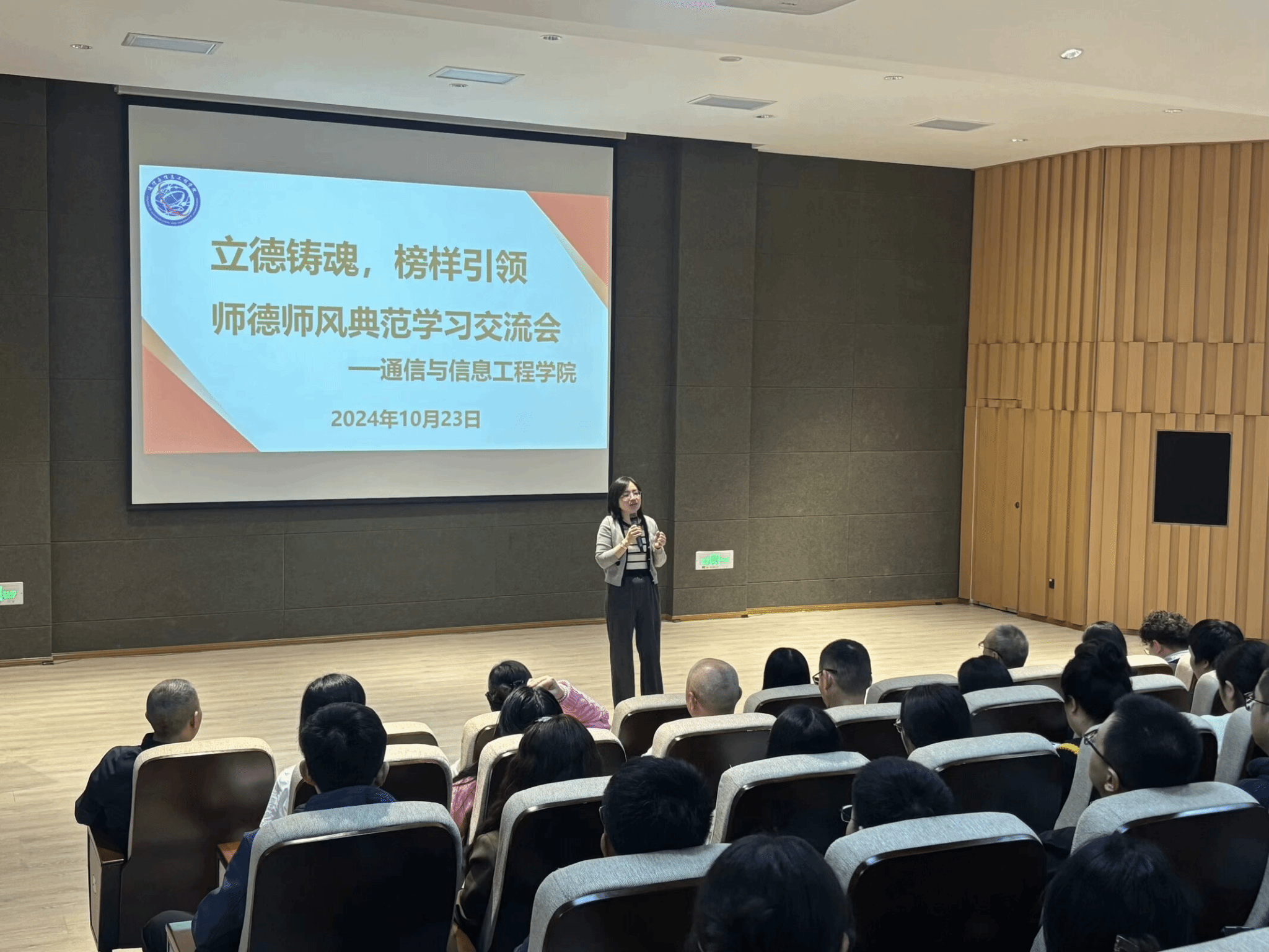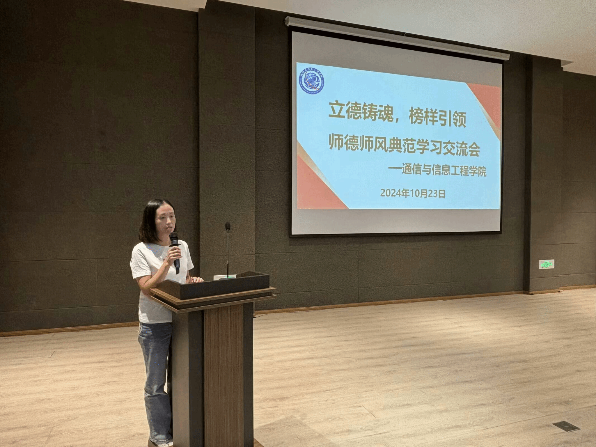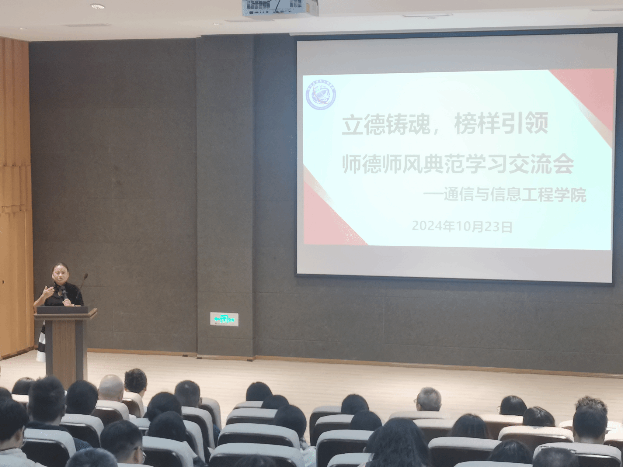 良好的师德、高尚的师风是做好教育的灵魂,为了不断提高学院教师的师德修养,端正价值观,增强创新意识、责任意识,10月23日下午15:00,通信与信息工程学院在六度空间无线多功能厅召开师德师风典范学习交流会,学院全体教职工参会,会议由唐林建副院长主持。