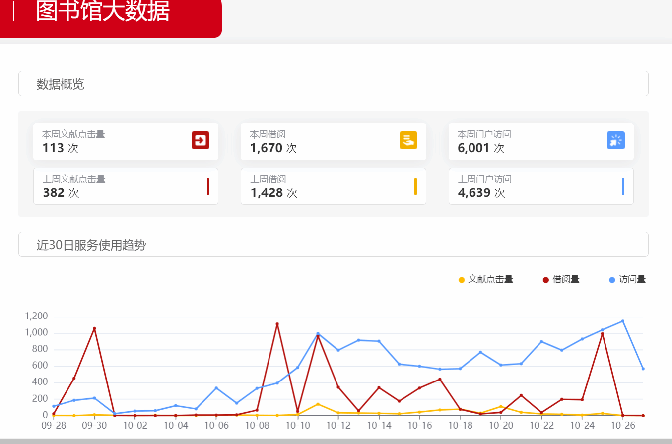 此外,图书馆的大数据分析,能实时显示读者查看文献的点击量、借阅量、访问量等多个维度的数据信息,为学院师生读者有效利用图书资源、提升图书的利用率,为提升教育教学、科研研究、专业建设、课程内容提供了参考依据,同时也为学校本科教学合格评估图书利用率高提供支撑。