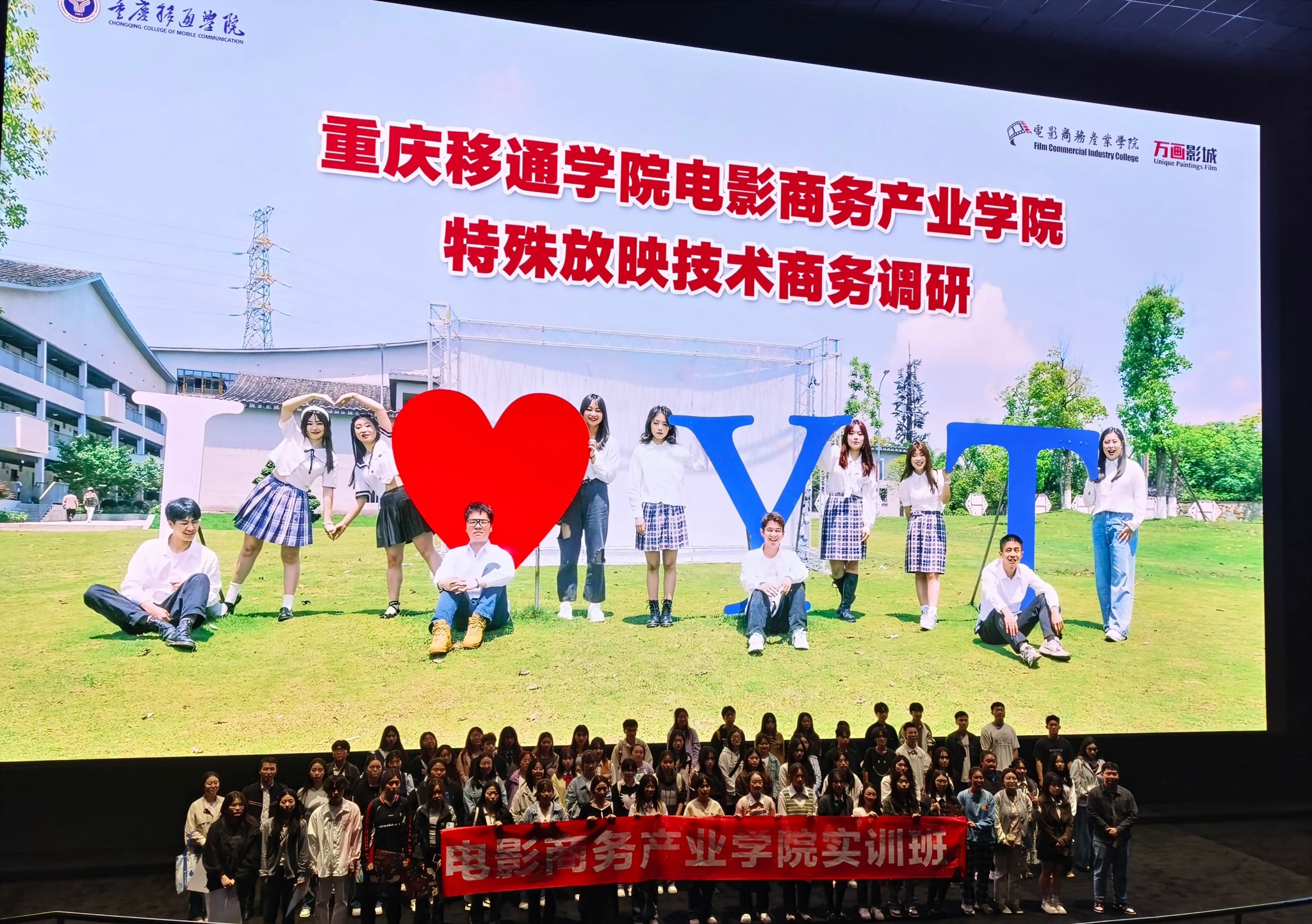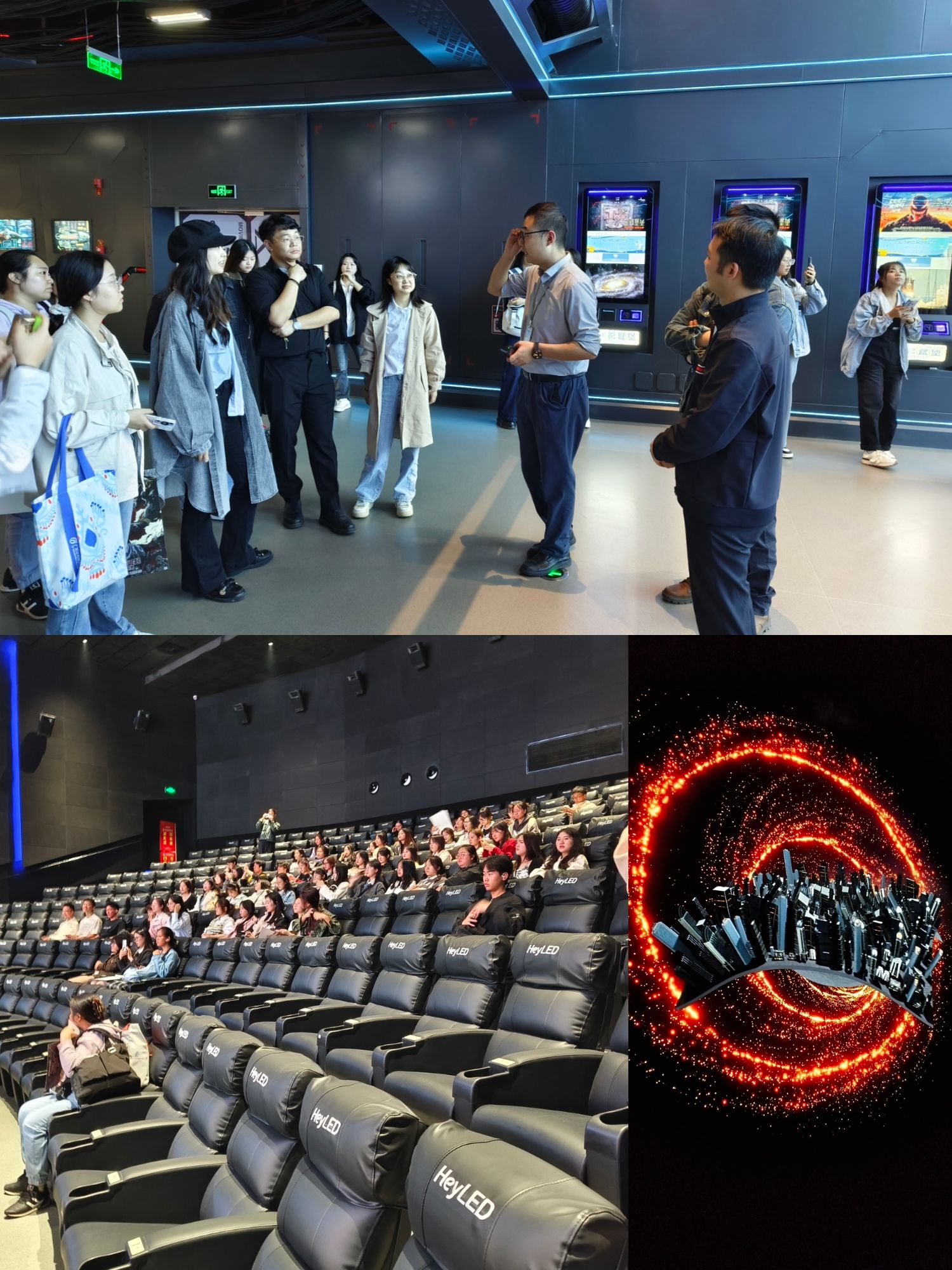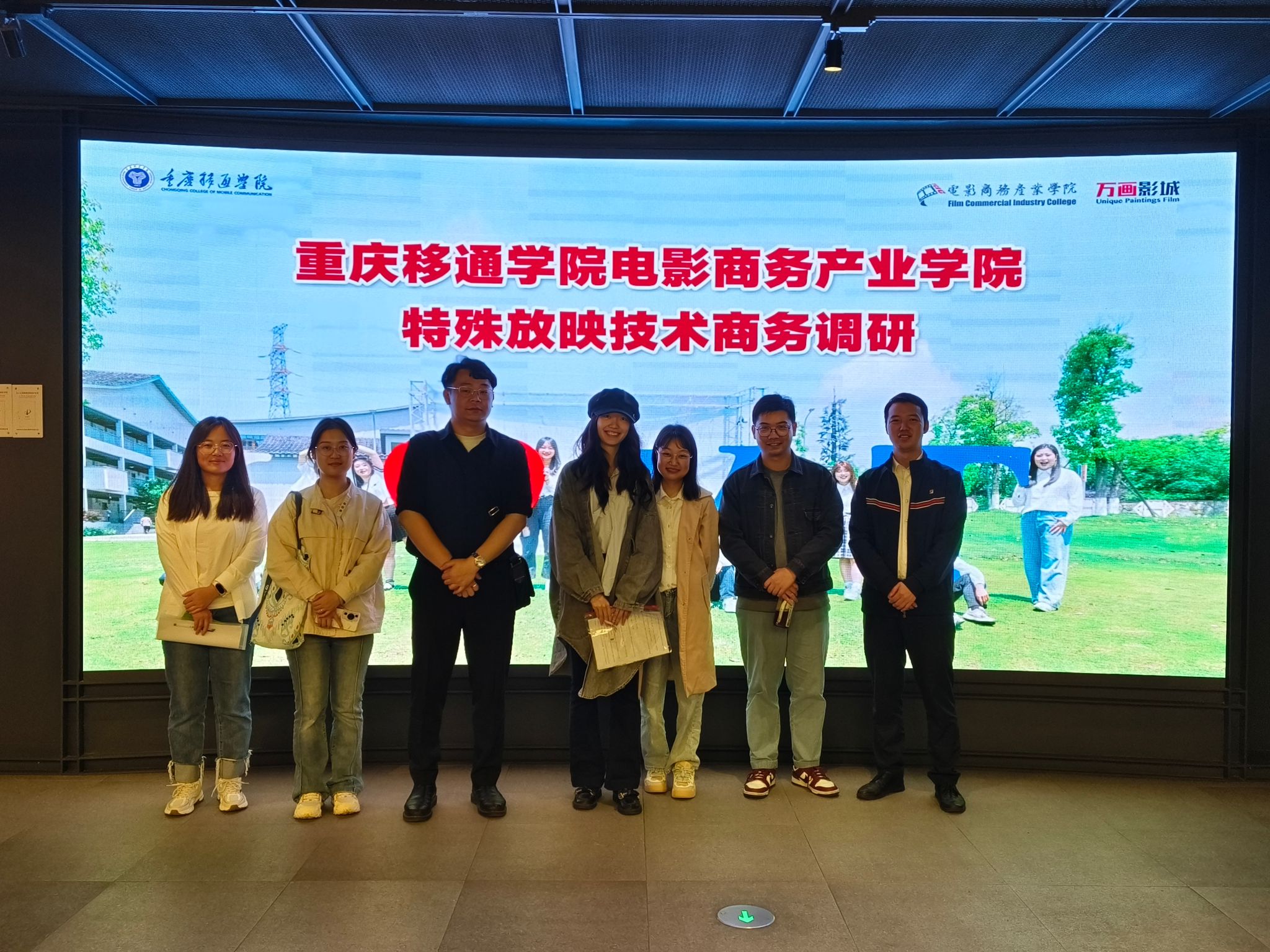 随后,实训班来到了南坪M³电影城堡。这里的cinity和重庆市最大LED技术放映的影片效果让学员们惊叹不已。工作人员再次为学员们进行讲解,强调了LED屏幕放映的影片与传统影片放映方式的不同之处。LED放映不依赖投影仪,而是直接通过屏幕放映,色彩鲜明,能够形成裸眼 3D 的效果,为观众带来更加逼真的视觉体验。学员们沉浸在这种全新的观影感受中,仿佛置身于电影的奇妙世界之中。