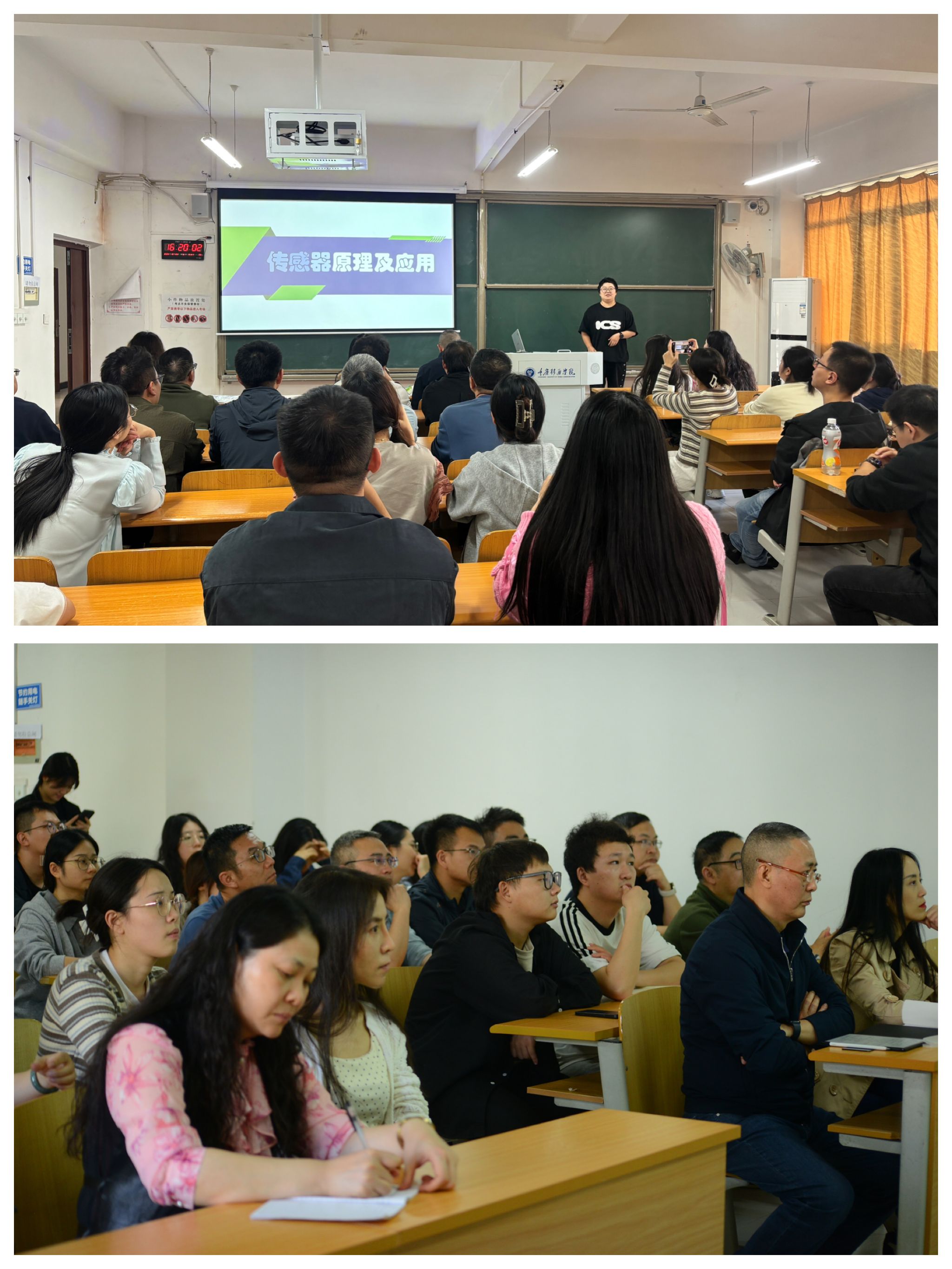 紧接着,程彩玲老师正式开始了她的示范性课程讲课。程彩玲老师以“传感器原理及应用”课程中的“热电偶”章节为核心,为在座的教师们呈现了一堂生动有趣、深入浅出的示范课。程老师首先从学情分析入手,指出学生对工程实践类课程有较高的兴趣,但存在基础知识起点不同和动力不足的问题。她强调了课程定位的重要性,即在教学中要注重基础和应用的结合,以及“学思融合”的教学理念。程老师明确了课程的教学目标,期望学生不仅能够掌握热电效应的基本原理和热电偶的基本结构及特性,更能培养出一种敢于质疑、独立思考、严谨求实的科学精神。