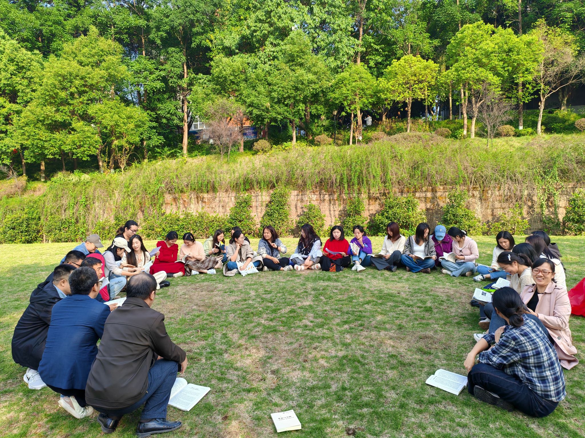 在羽毛球比赛结束以后,读书分享会也在学校大草坪上继续展开。教职工们围坐一起,享受着秋日的暖阳与书香的浸润。此次读书分享会的主题围绕教育、文化、历史、科技等展开,教职工们纷纷带来了自己精心挑选的书籍进行分享。