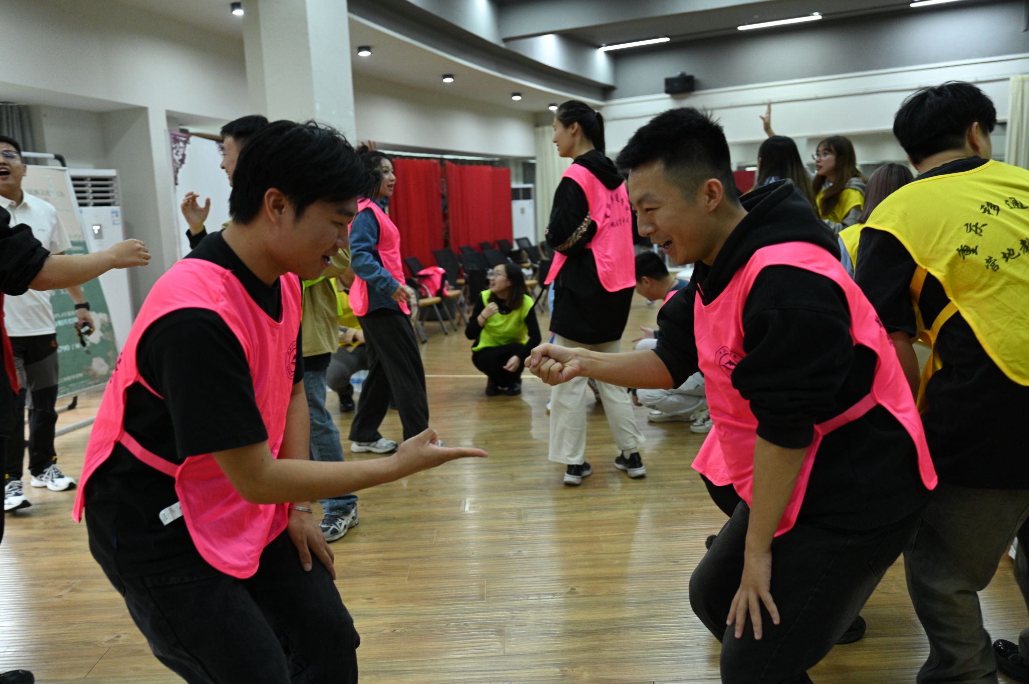 在教练的指导下,通过随机分组,推选队长,在各显神通的头脑风暴中确定队名、口号、队旗,迅速完成了破冰团建。随后,各队经过“水果抱一抱”“小鸡变凤凰”“数字密码解析”等游戏环节,在轻松愉快的氛围相互熟识,建立联系,增进了感情,提升了团队协作和默契度。活动现场紧张激烈、趣味横生,加油声呐喊声此起彼伏。不管是考验众人反应力的抱团游戏,还是欢声笑语的猜拳游戏,又或者是60秒内推测卡片数字并按序排列的推理游戏,既是体力的比拼,更是集体的协作。大家在汗水和笑声中,用尽全力为团队争取更多的分数,展现了团队协作和积极向上的精神风貌。