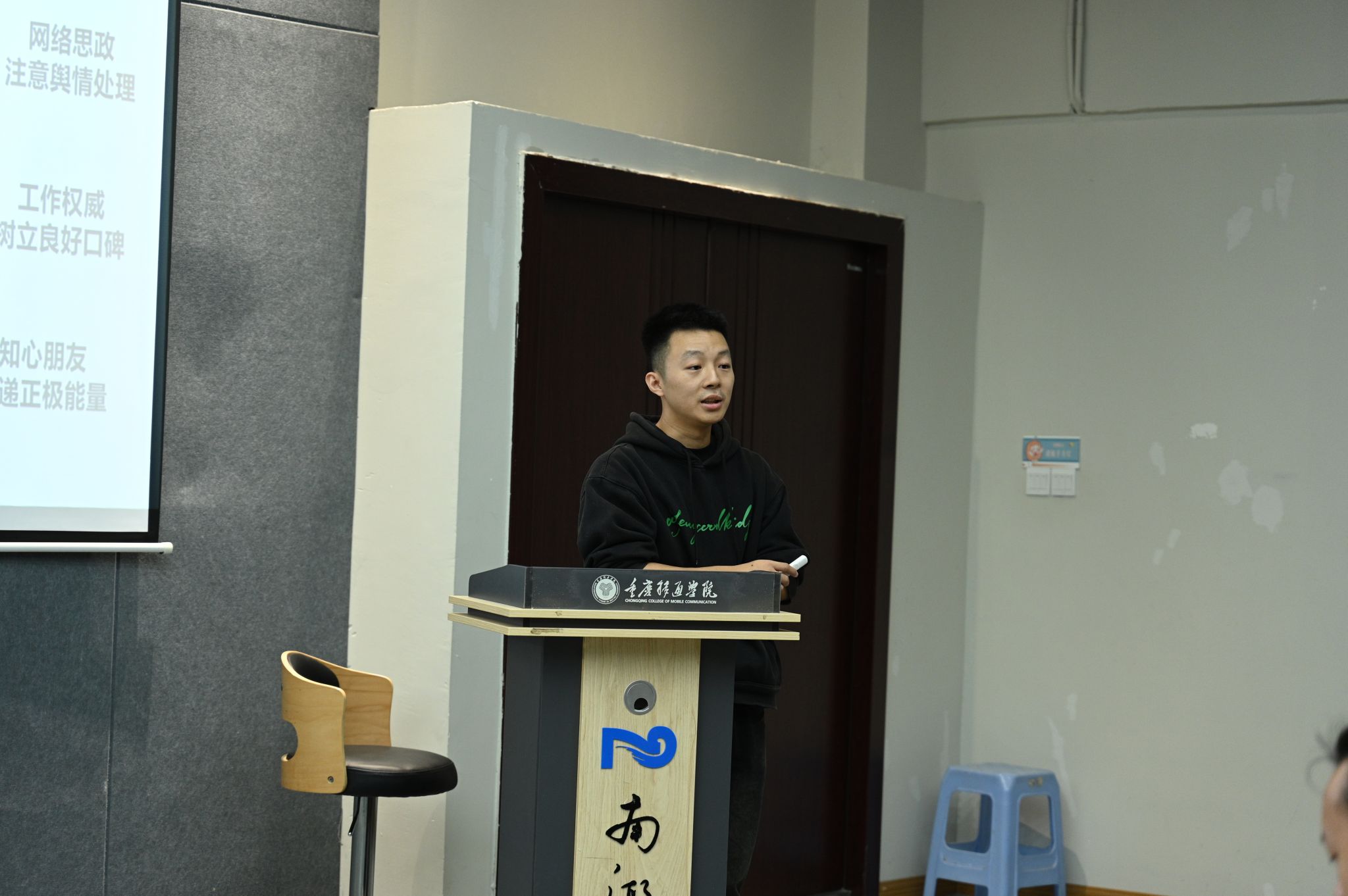 汇江书院发展导师晏含植和书院部科员蒋东廷以高校新闻宣传工作为切入点,分享了大学文化建设的价值深化与路径创新以及AI技术的应用与宣传平台运营管理的工作方法。
