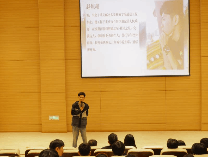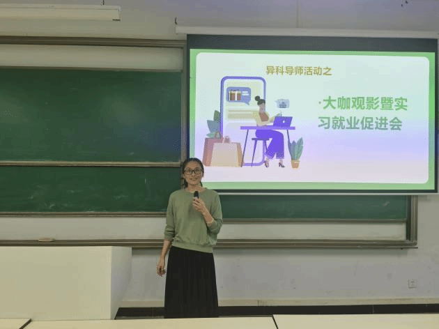 异科导师管悦在六度空间无限多功能厅参与了“送你一封好运Offer”主题年级会,在活动中结合自己的求职经历和工作经验,为即将踏入实习岗位的学生们送上最真挚的鼓励和建议。