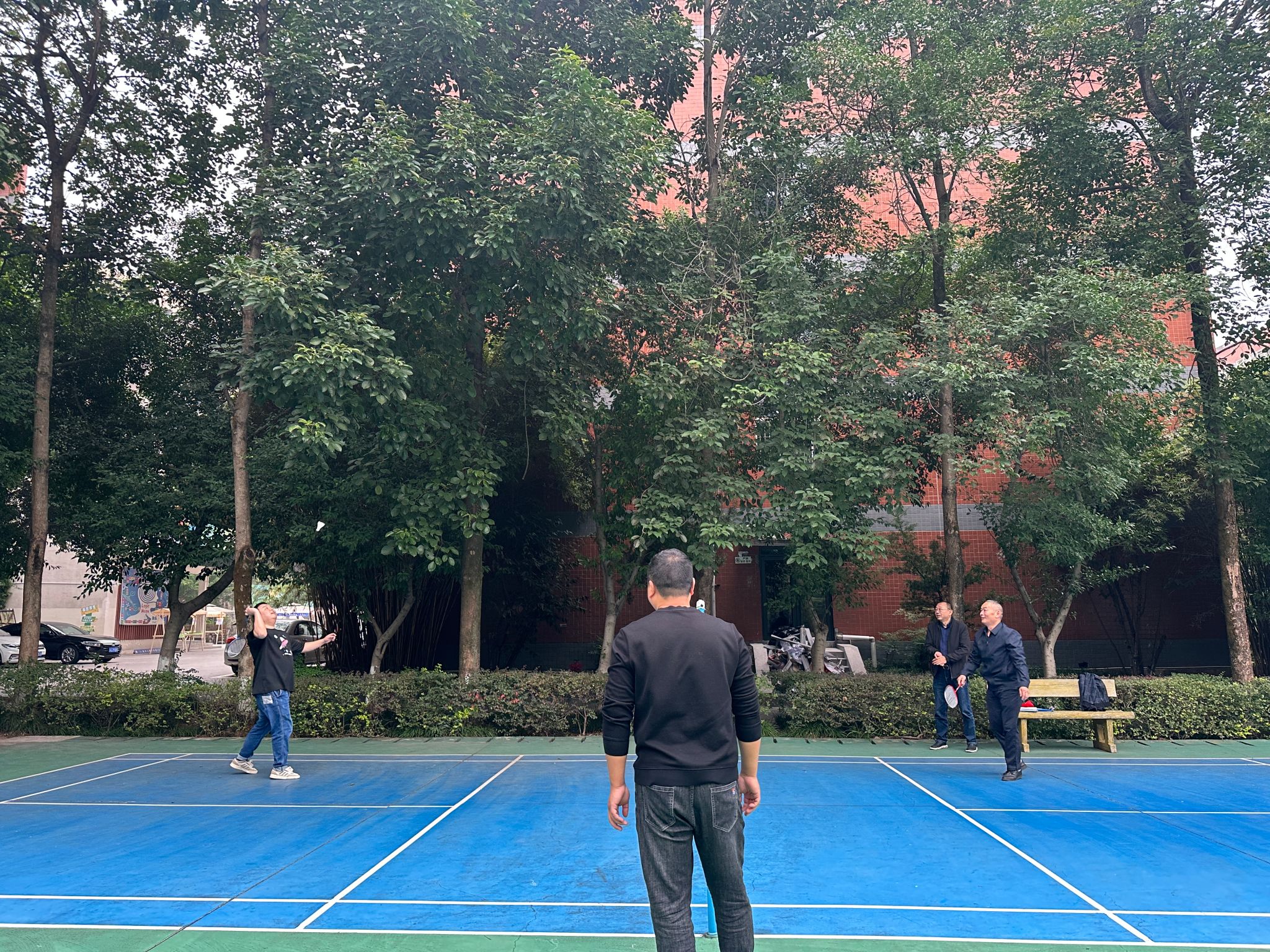 活动正式开始后,先由彭洪处长带领各职工进行热身运动,并进行安全、规则的讲解。之后便进入了正式的比赛,乒乓球场内,老师们身着轻便的运动装备,眼神专注而锐利,白色的乒乓球在空中划出一道道优美的弧线,时而疾如闪电,时而轻盈飘逸,空气中弥漫着浓厚的竞技氛围。而在羽毛球场上,情况同样激烈,羽毛球轻盈地穿梭于网间,老师们脚步轻盈,反应迅速,每一次跳跃扣杀都展现出惊人的爆发力和精准的控制力。