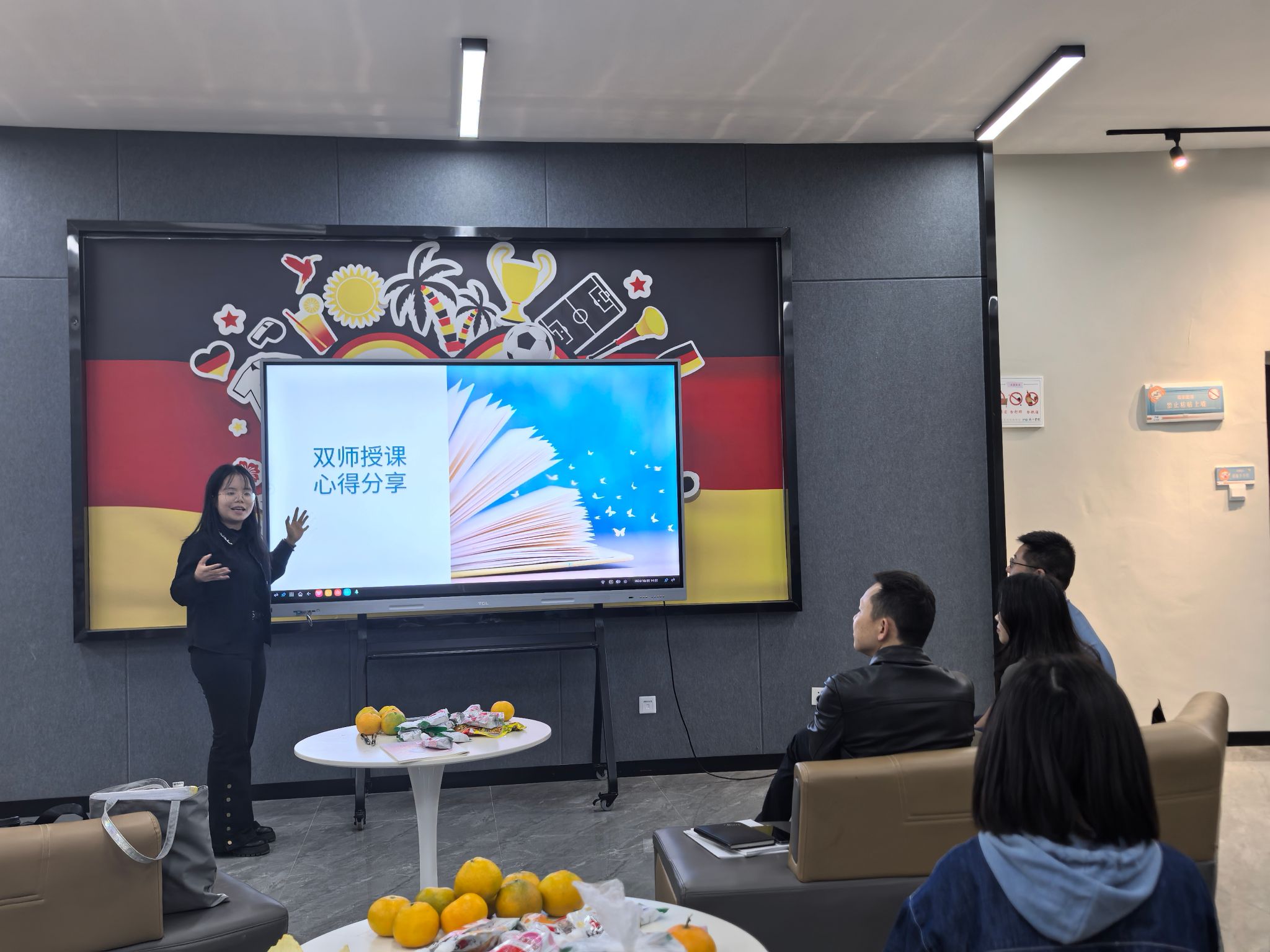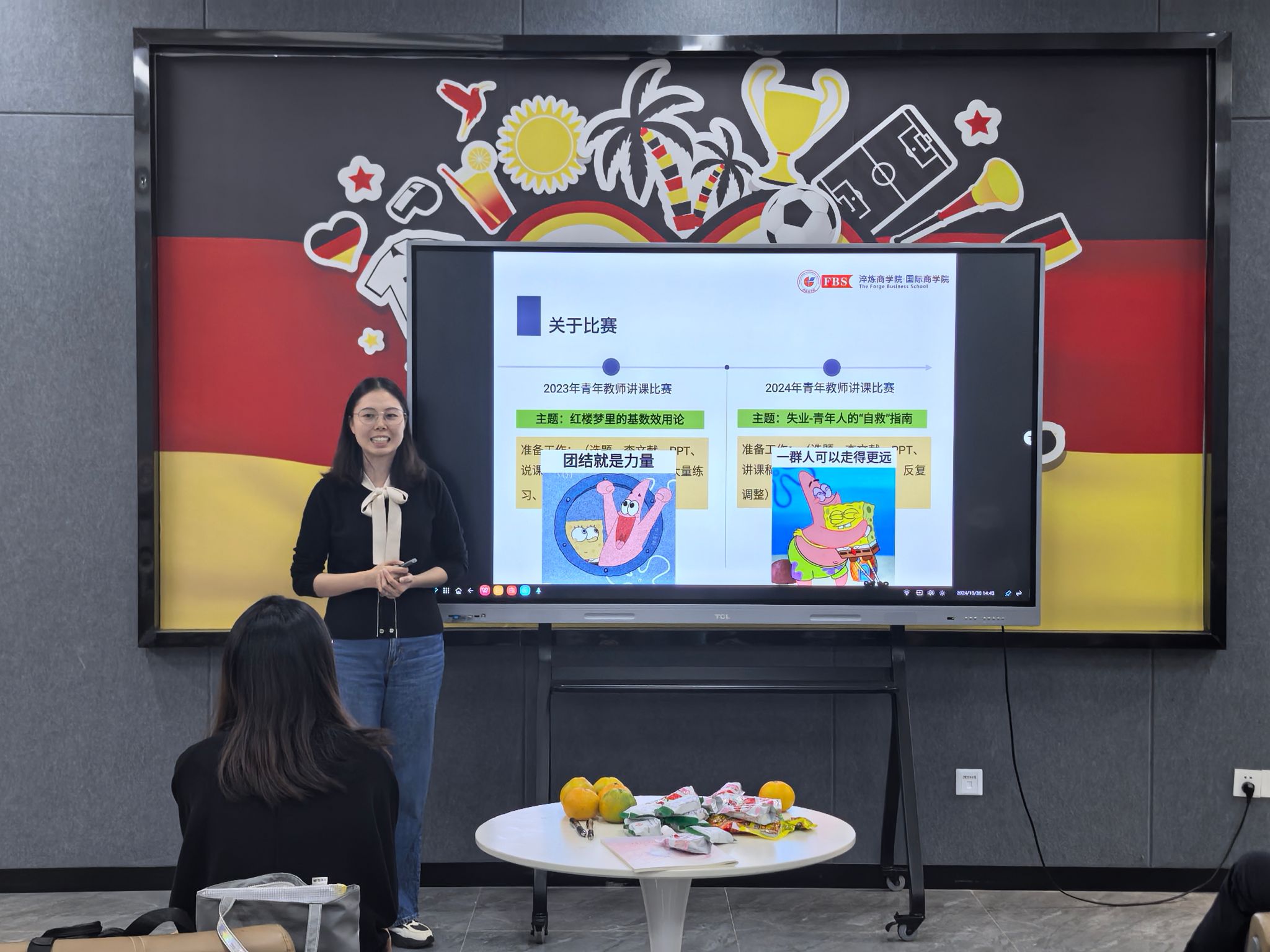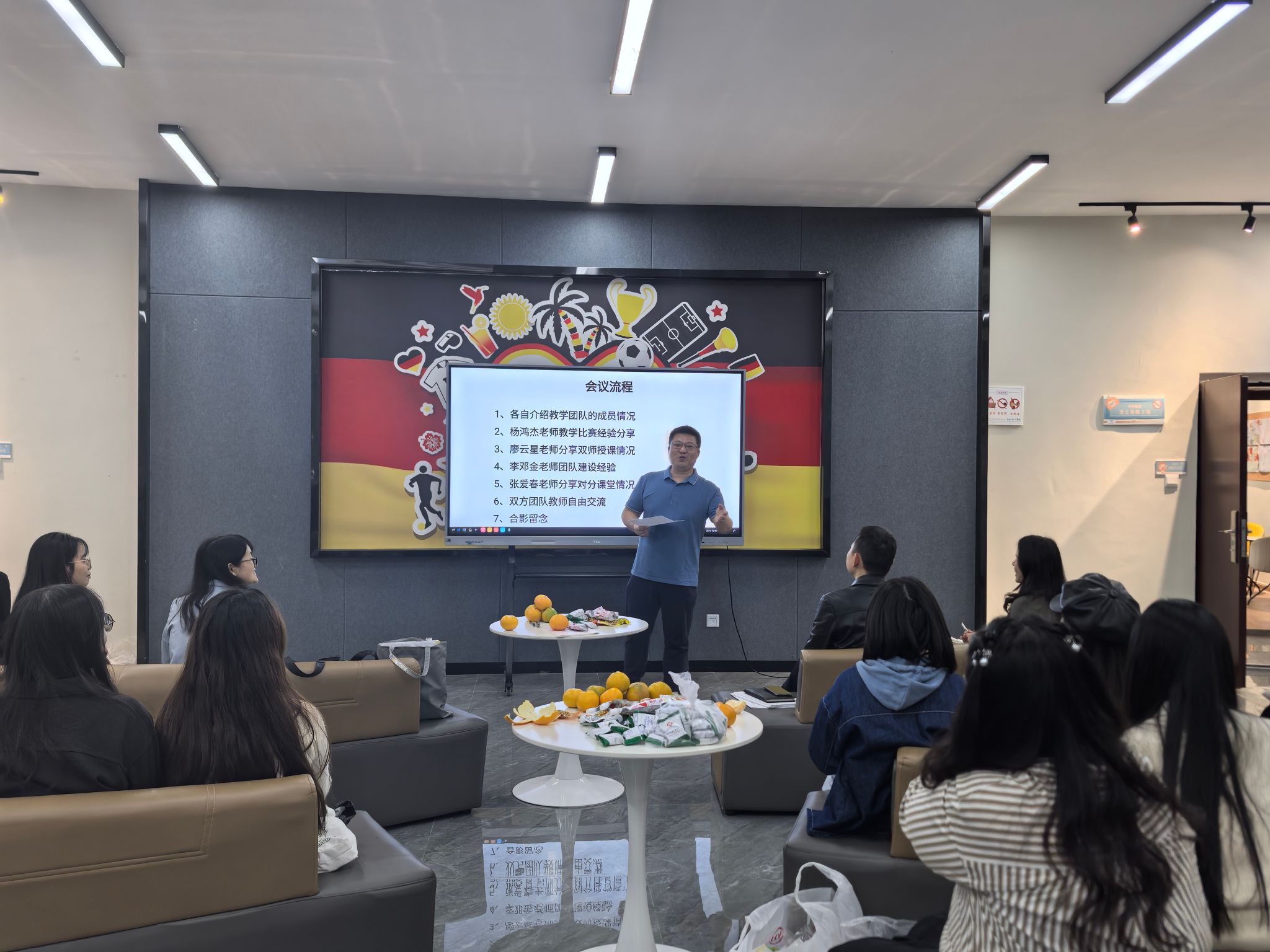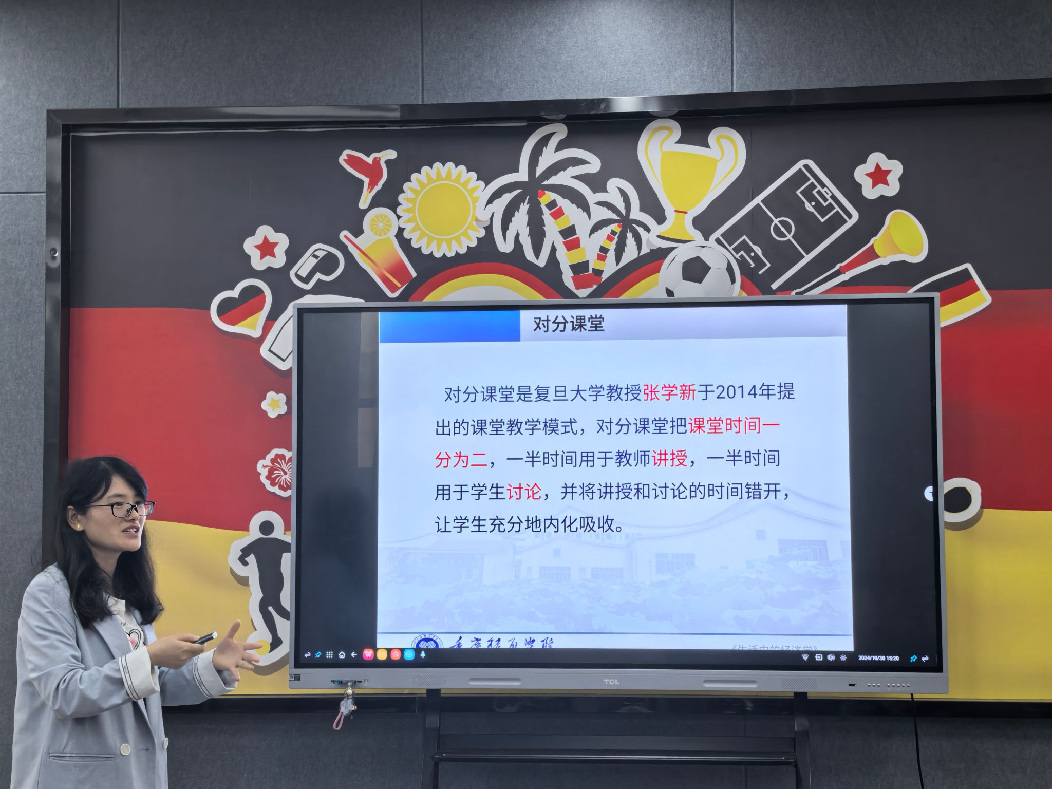 在主题交流和经验分享环节,首先由淬炼商学院的杨鸿杰老师结合她丰富的教学比赛经验向大家进行了详细的分享,她从“关于比赛、知识点选取、说课、讲课、练习”等环节向大家把关于教学竞赛的所有方法和技巧毫无保留的做了分享,每位老师对此都听得十分认真。随后,通识教学部的廖云星老师就双师授课的相关经验进行了分享。廖老师就此前成功实施双师授课的经验进行总结,并就目前正在筹备下一次的双师授课活动情况给老师们进行了分享。廖老师说到,因为通识课老师们所教授的班级大多数存在跨专业的情况,由于老师们自身的专业受限,因此结合多专业老师进行双师授课会使学生受益更多,同时课堂乐趣也更多。接着淬炼商学院李邓金老师就团队建设方面做了交流分享,李老师结合曾经作为《生活中的经济学》课程的负责人以及带领团队成员做该课程建设的情况进行了分享,重点向大家介绍了团队建设的策略和团队建设成效。主题分享的最后一位老师是通识教学部的张爱春老师,张老师在对分课堂的实践方面经验丰富,对分课堂是教学改革的一种重要方式,张老师以“理性人假设”这一节知识点为例,向大家详细介绍了如何在教学实践中进行对分课堂。