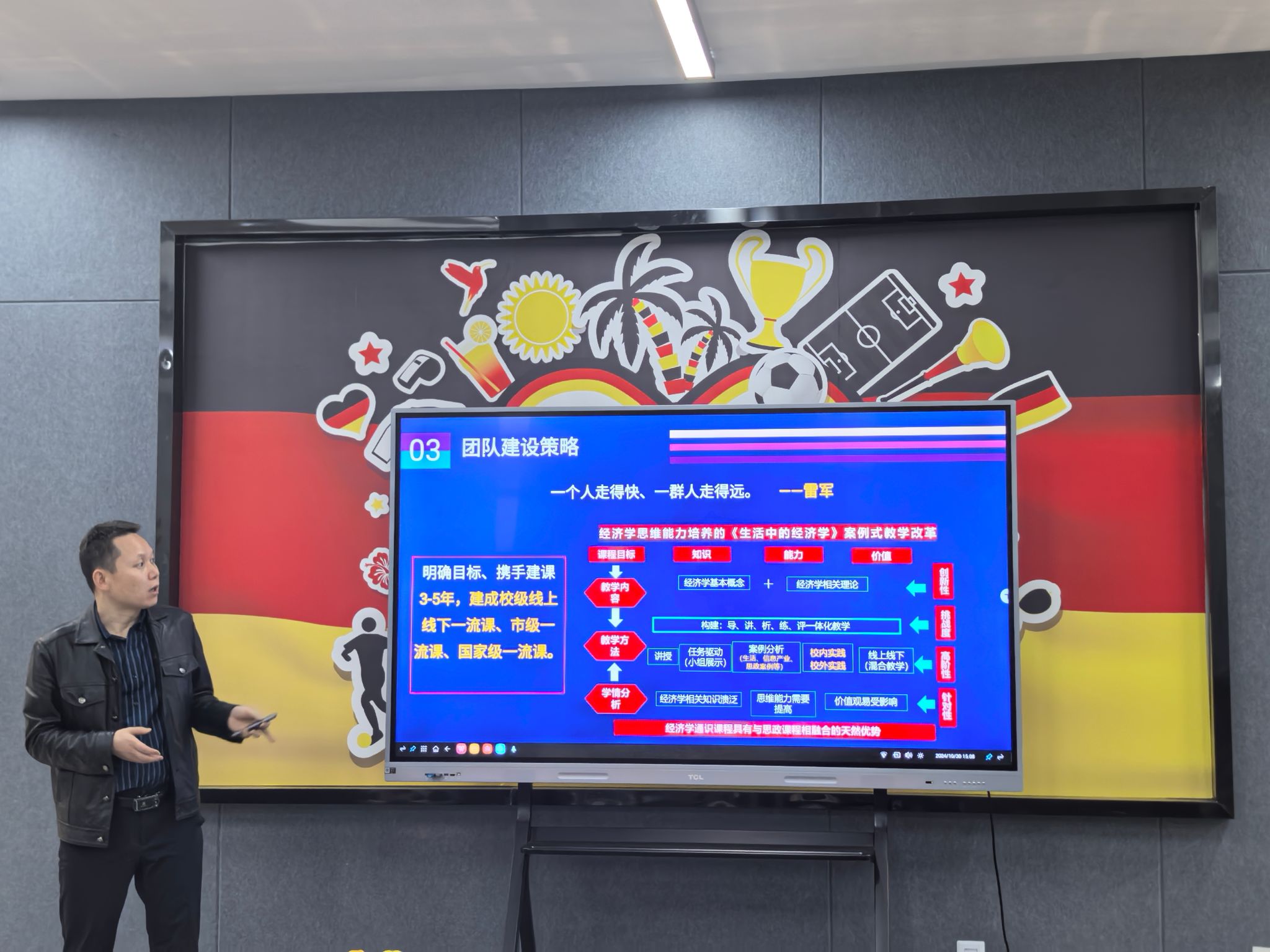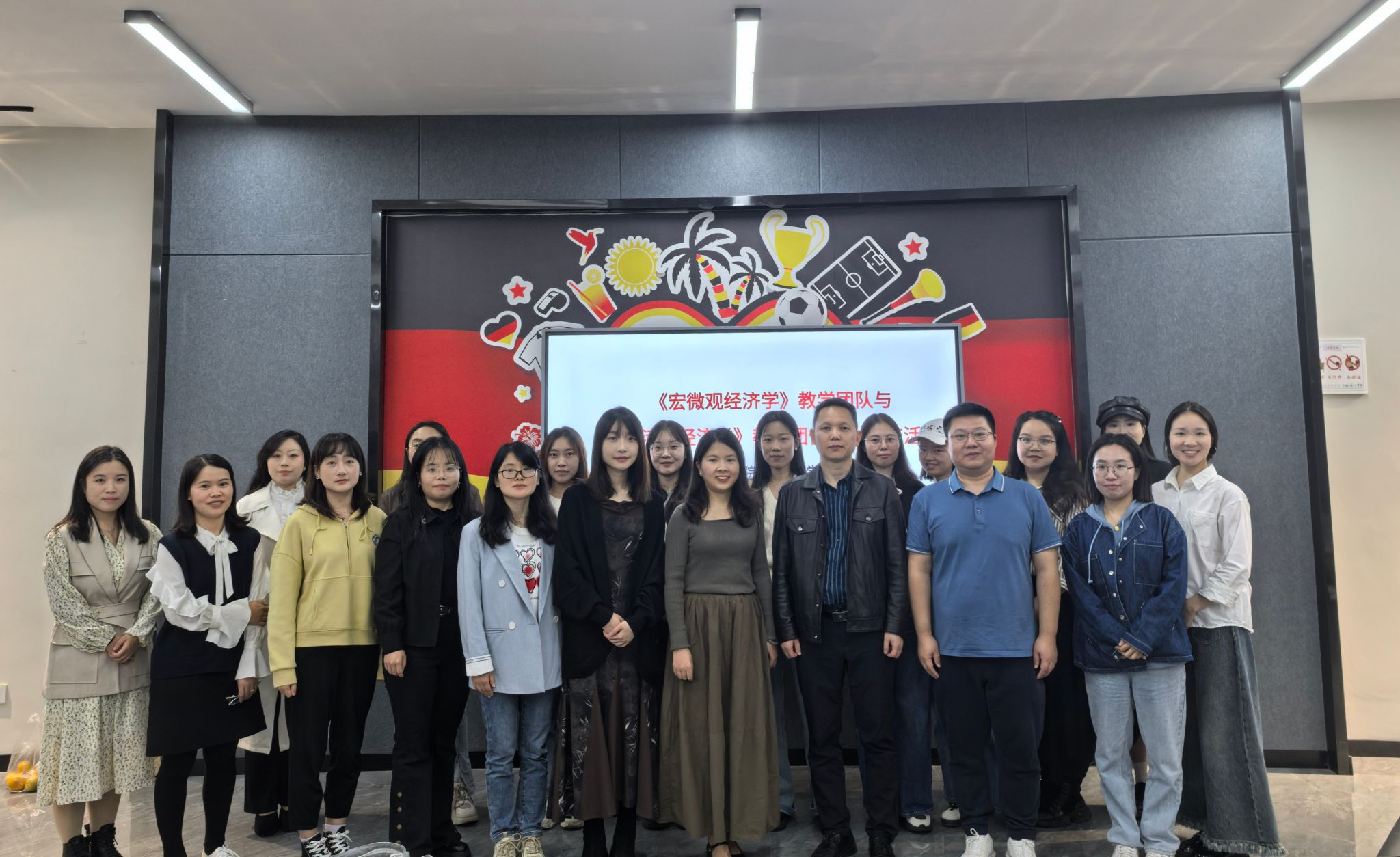为贯彻落实学校“四位一体双院制+特色课程”人才培养模式,加强商科教育与通识教育融合,探索交叉融通育人模式,淬炼商学院《宏微观经济学》教学团队与通识教学部《生活中的经济学》教学团队于10月30日14:30在南湖书院中德创意工坊开展了课程团队融合交流活动。淬炼商学院《宏微观经济学》教学团队老师、通识教学部科学教研室主任黄延果及《生活中的经济学》团队老师参与了本次交流活动。活动主要围绕教学竞赛、教学团队建设、双师授课、对分课堂等方面的经验分享展开,《宏微观经济学》教学团队负责人陈郑老师主持本次交流活动。