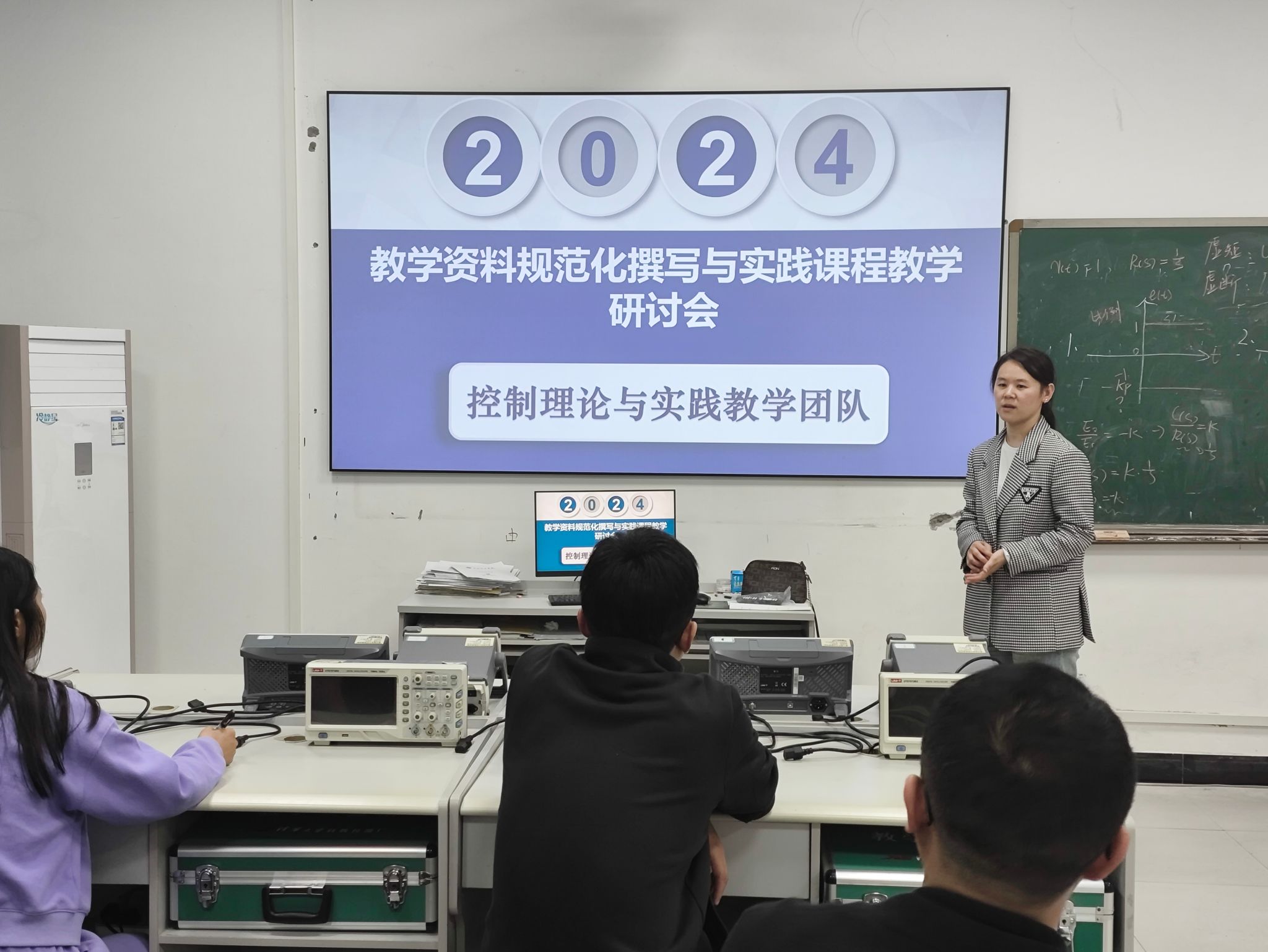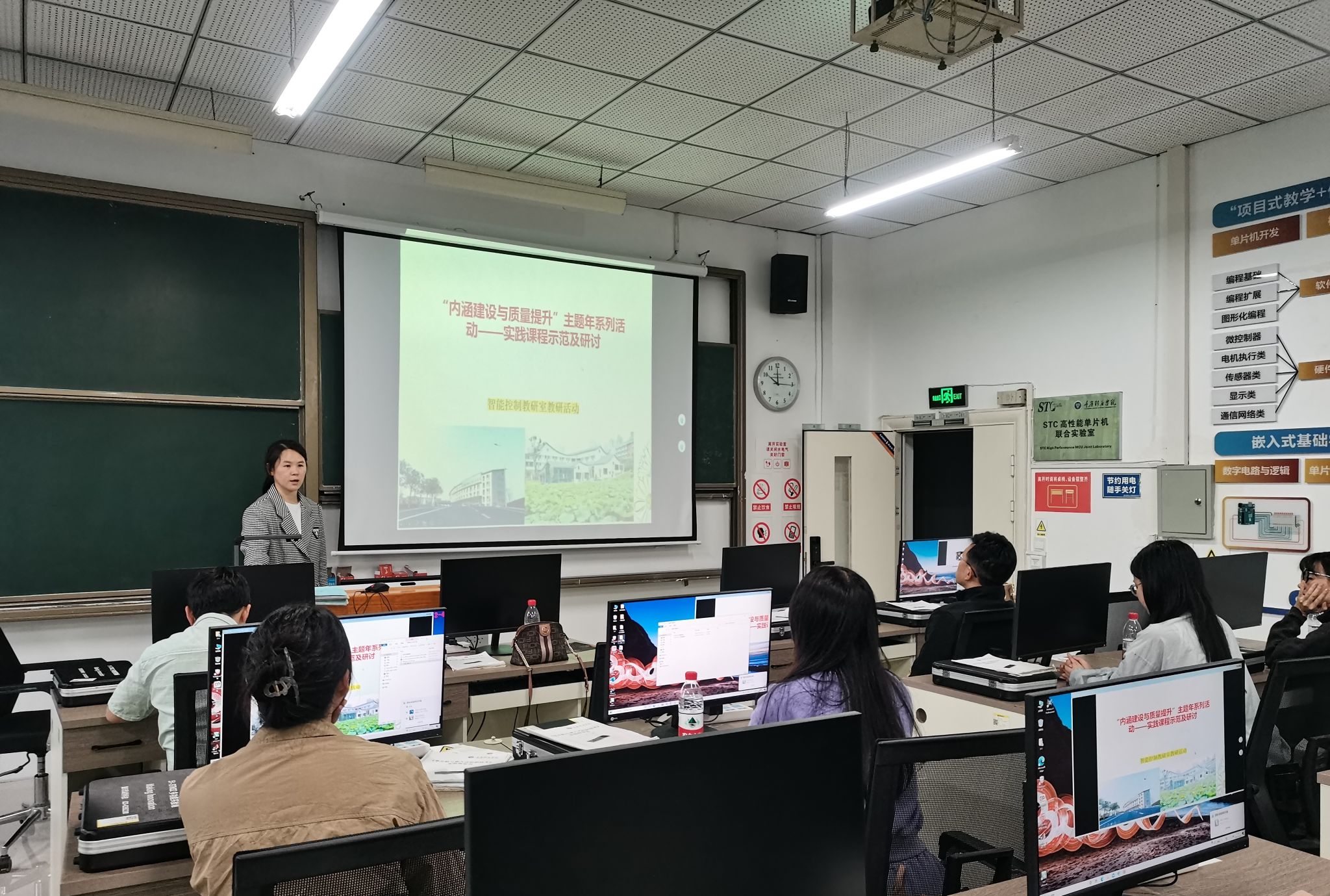 此外,控制理论与实践教学团队还在S1105实验室开展了教学资料规范化撰写与实践课程教学研讨会。王瑞芳老师从教学大纲的制定、教学计划的合理安排到教案的具体撰写等方面,逐一剖析了教学“三件套”的规范化要求与重要性。通过她的细致讲解,团队教师对教学资料的规范化撰写有了更加深刻的认识。