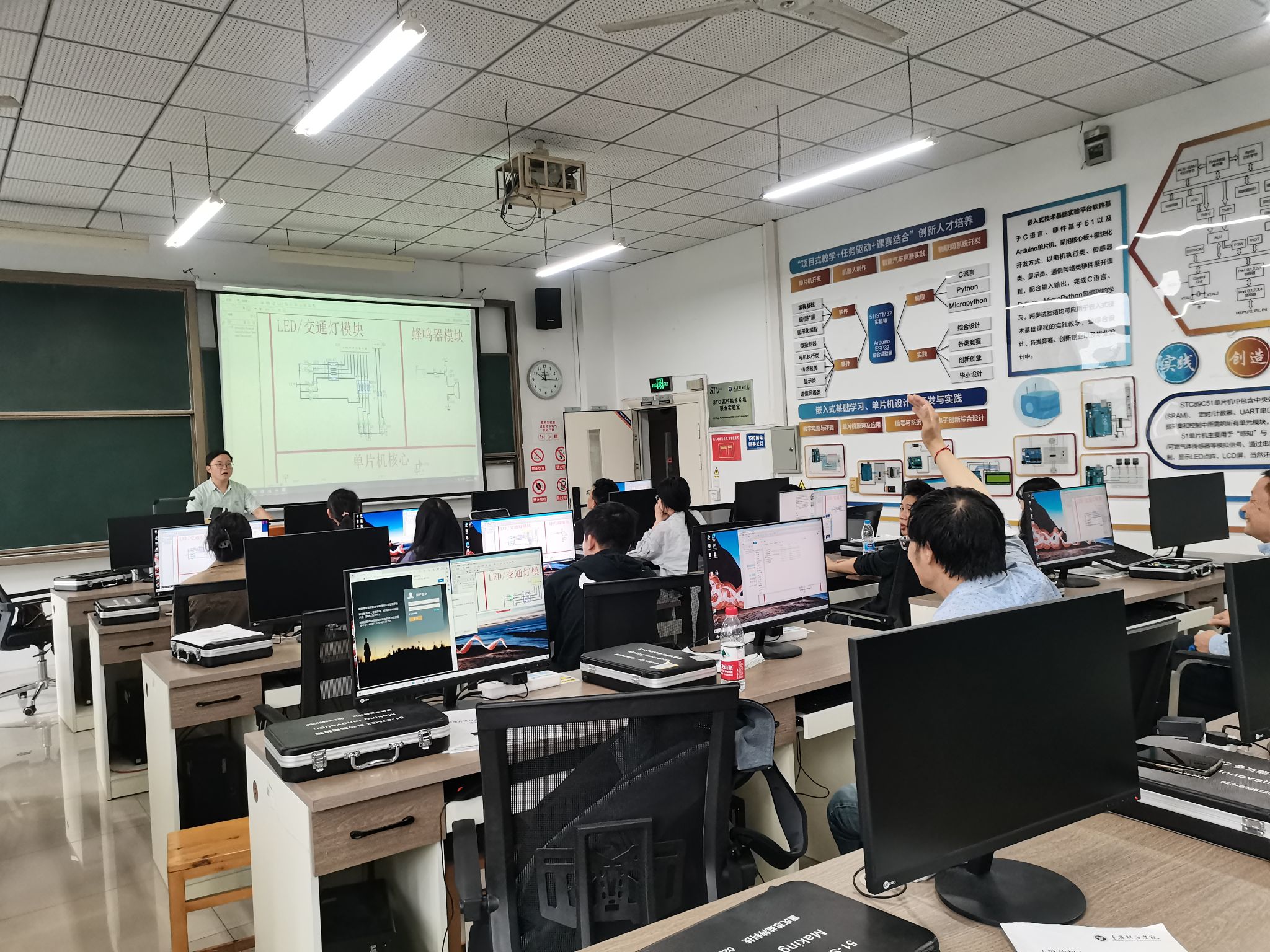 为响应“内涵建设与质量提升”主题年活动,进一步提高实践课堂教学质量,传授优秀的实践教学方法,强化教研引领,培养学生的实践能力,智能工程学院智能控制教研室于10月30日周三下午4:00在S3305实验室召开了实践课程示范及研讨会。本次会议由教学团队负责人王瑞芳老师主持,教研室全体教师积极参与,共同探讨了实践教学的新思路和新方法。