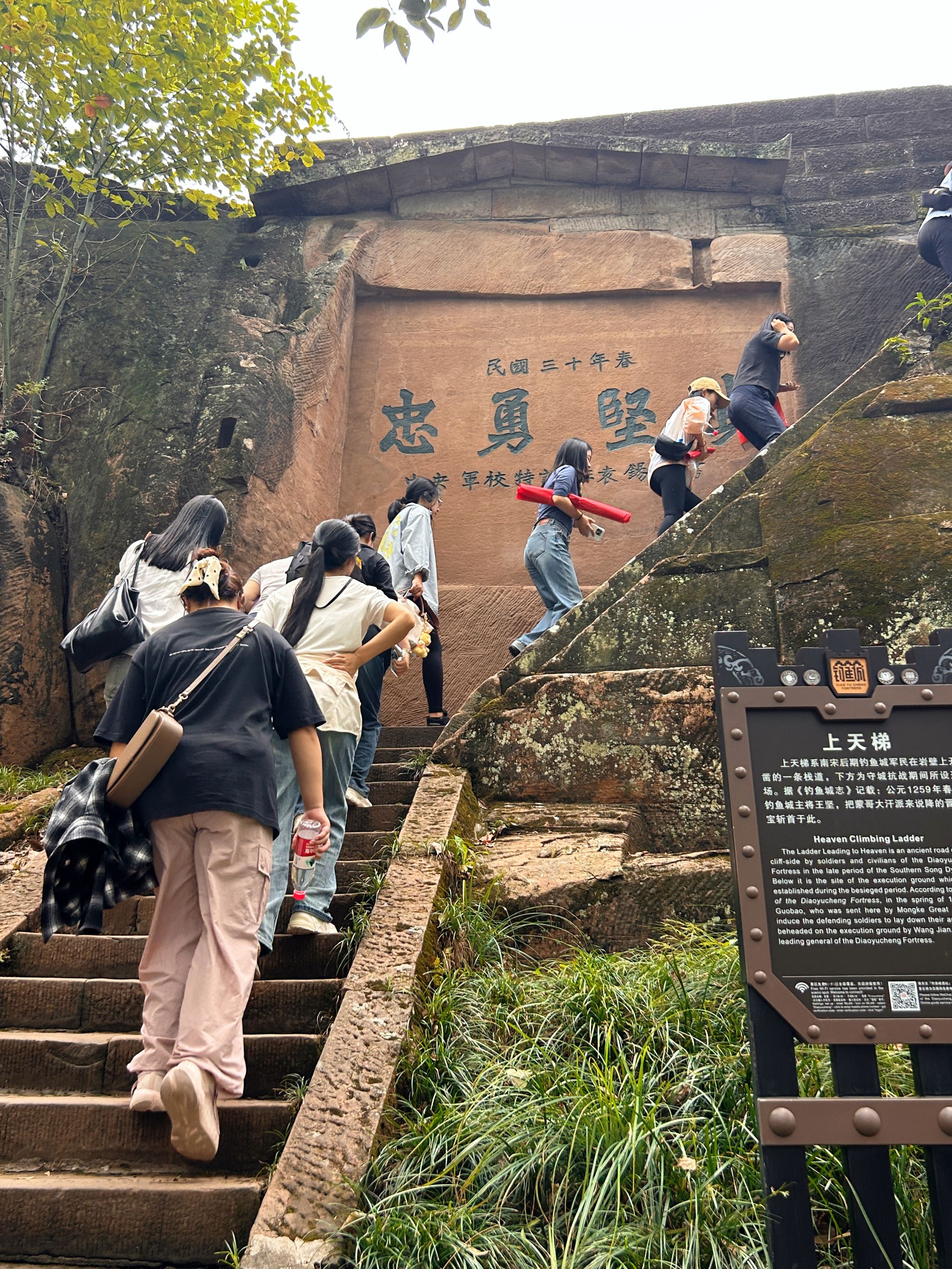 到达钓鱼城后,教师们沿着预设路线登山,聆听工作人员讲解钓鱼城的历史故事,参观了护国门、钓鱼台、古炮台等诸多关键遗址点,仿佛穿越时空,走进那段南宋军民英勇抗争的历史。