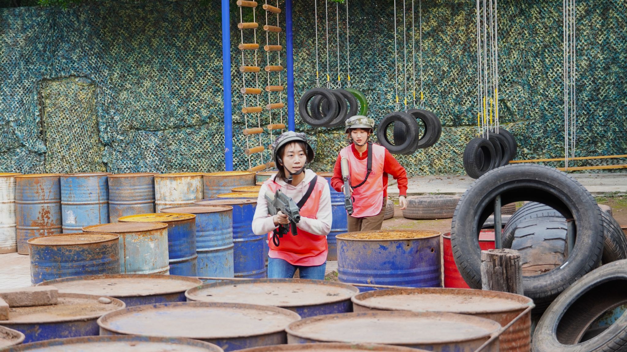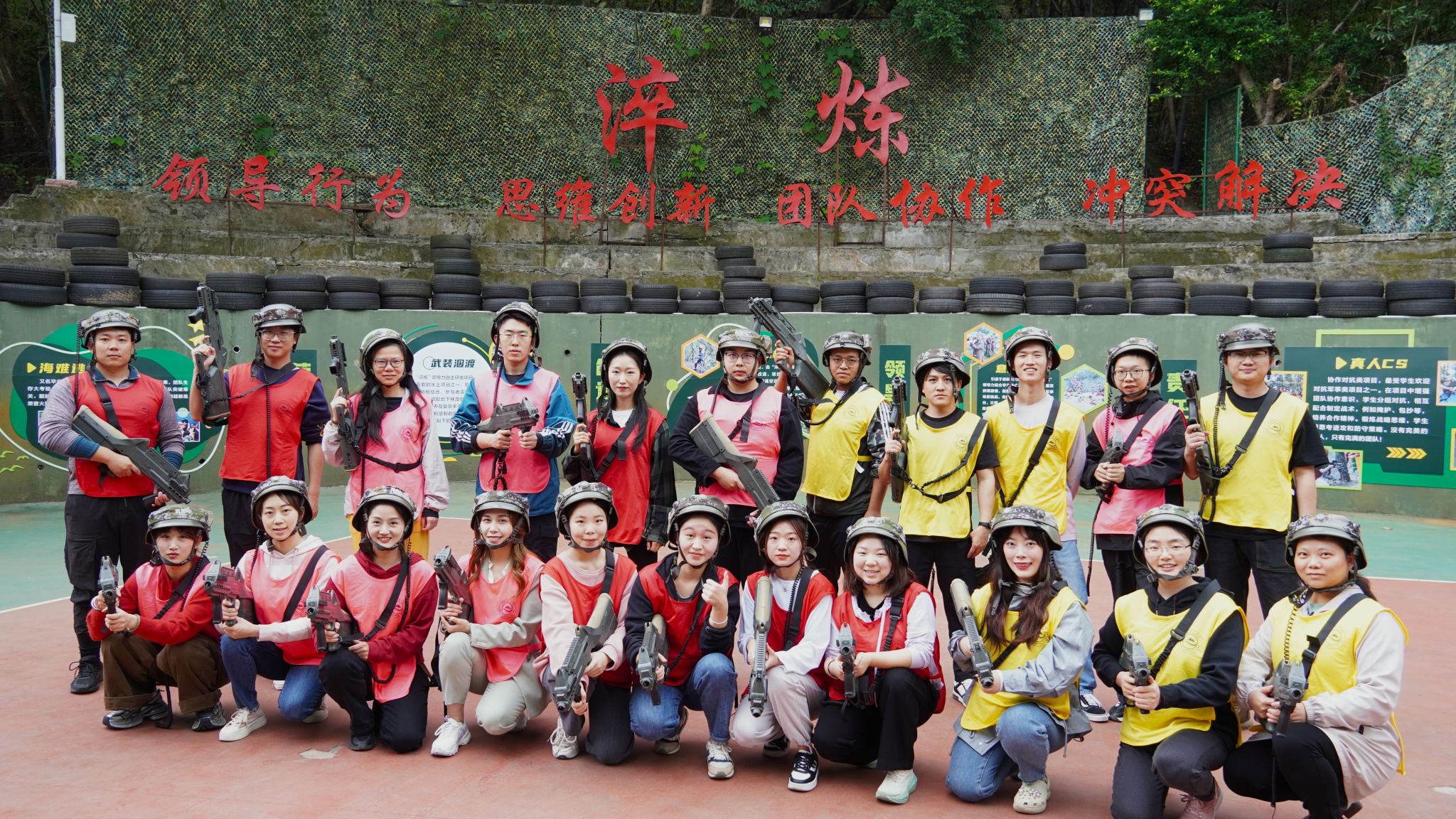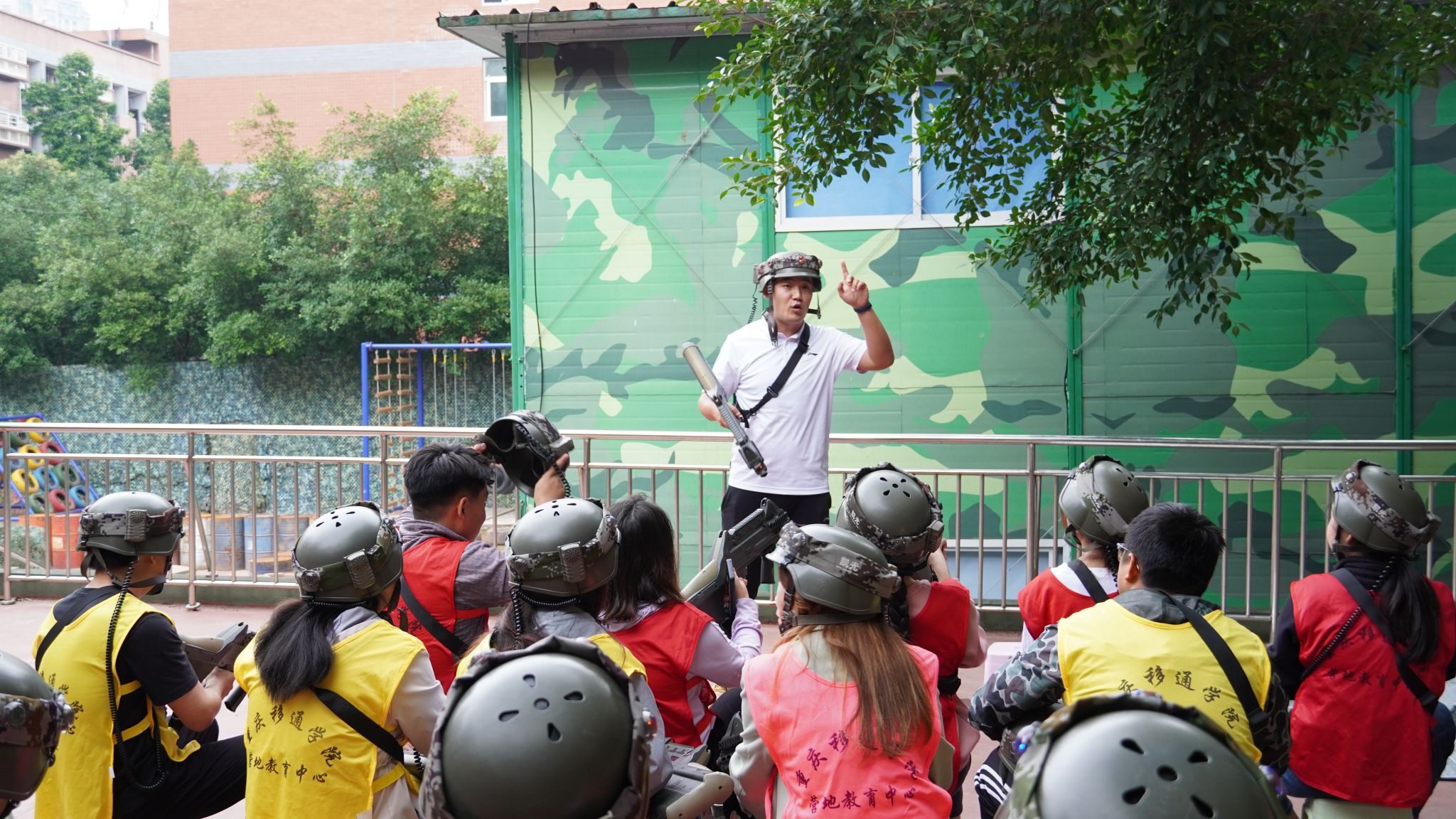 工作全力以赴,团建热情奔赴。活动伊始,营地教练们带领全体教职工做赛前热身,调动起大家沉睡已久的运动细胞,老师们身着运动服装,蓄势待发。待营地教练为大家分好组、详细讲解游戏规则后,一场沉浸式真人CS正式开始,大家穿上装备,穿越到游戏世界。每一次躲避和“击杀”,每一次紧张刺激的对战,都展现出三支队伍高超的战术素养和团队协作精神,每一次成功的进攻与防守都伴随着队员之间的默契配合与相互鼓励。在激烈的对抗中,大家释放了情绪,锻炼了体魄,不仅体验到了军事竞技的紧张刺激,更深刻感受到了团队合作的重要性。
