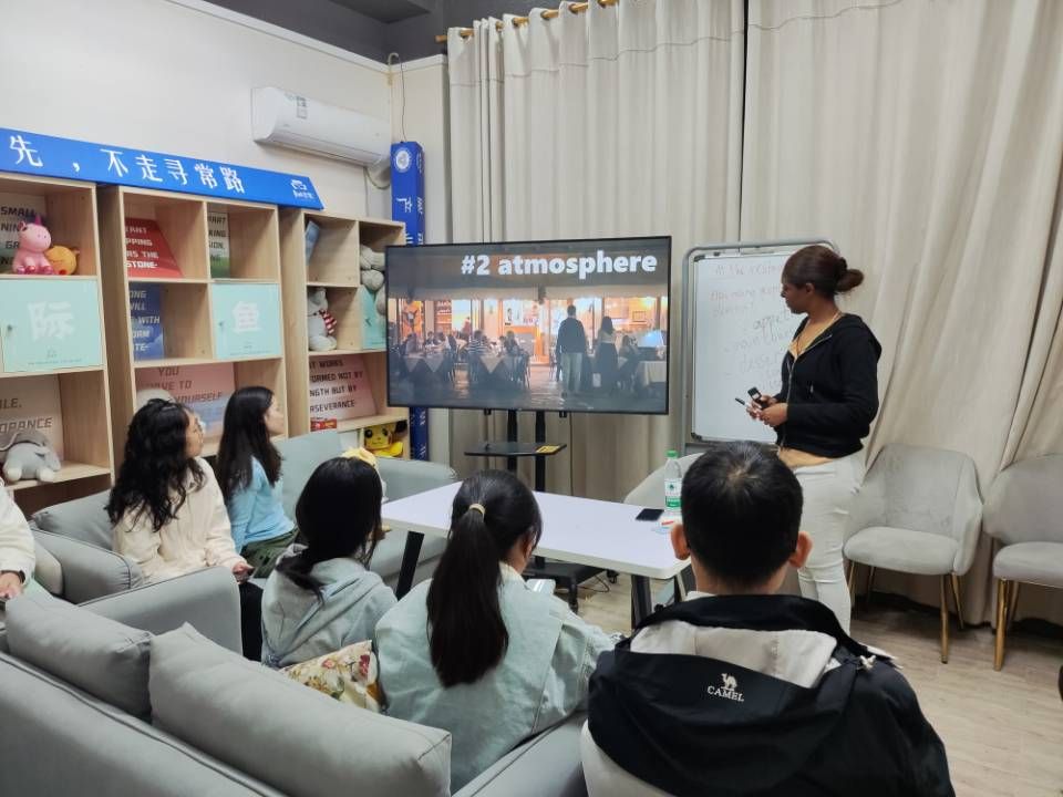 活动现场,外教Kris 还设置了自由交流环节。在这个讨论环节中,同学们坐在一起,分享了自己在餐厅用餐时遇到的趣事和尴尬经历,以及对于不同国家餐饮文化的看法和感受。大家纷纷表示,这样的活动既有趣又实用,不仅提高了自己的英语口语水平,还拓宽了视野和交际圈子。