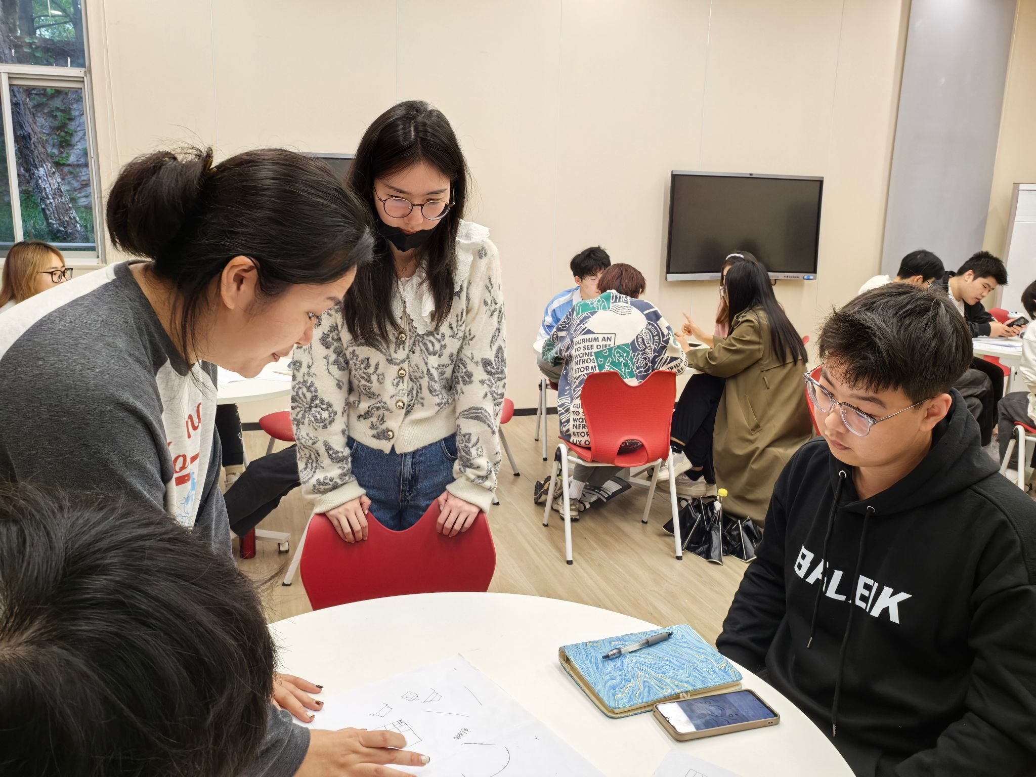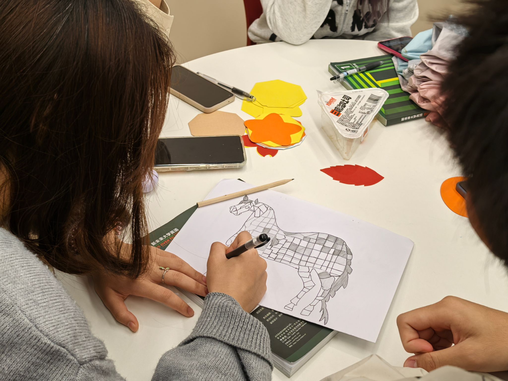 随后,三位老师与同学们共同参与了探索绘画中数学思维的设计实践,同学们在设计中巧妙融入数学原理,亲身体验了科学与艺术融合的新奇感受。