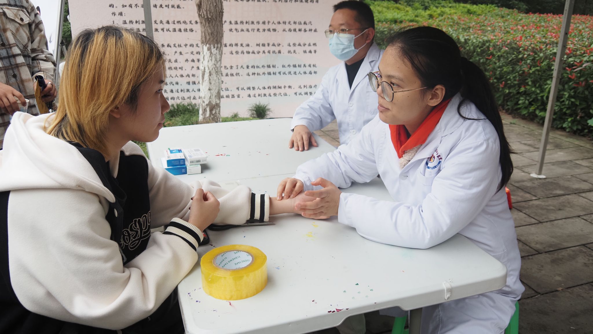 此外,疾病防控知识宣传区也备受关注。在现场,中医师们携带同学们完成知识问卷挑战,一同揭开疾病知识的神秘面纱。同学们不仅普及了疾病防控基础知识,还了解了校园就医相关问题。