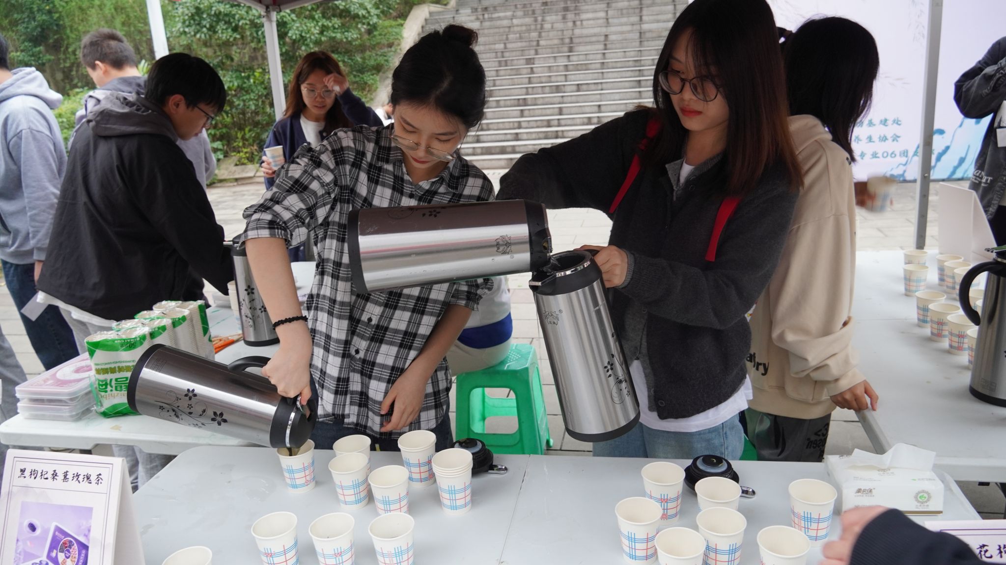“美食寻效,羹香之约。”在药膳养生区,同学们是“中药品鉴家”。红枣银耳羹和山药薏米粥的香气扑鼻而来,玫瑰花茶、酸梅汤、红豆薏米茶等饮品轮番上阵,让人垂涎欲滴。同学们在品尝药材美食的同时,还积极回答关于食材功效的问题,不仅满足了味蕾的享受,还增长了养生知识,感受传统茶饮的魅力。