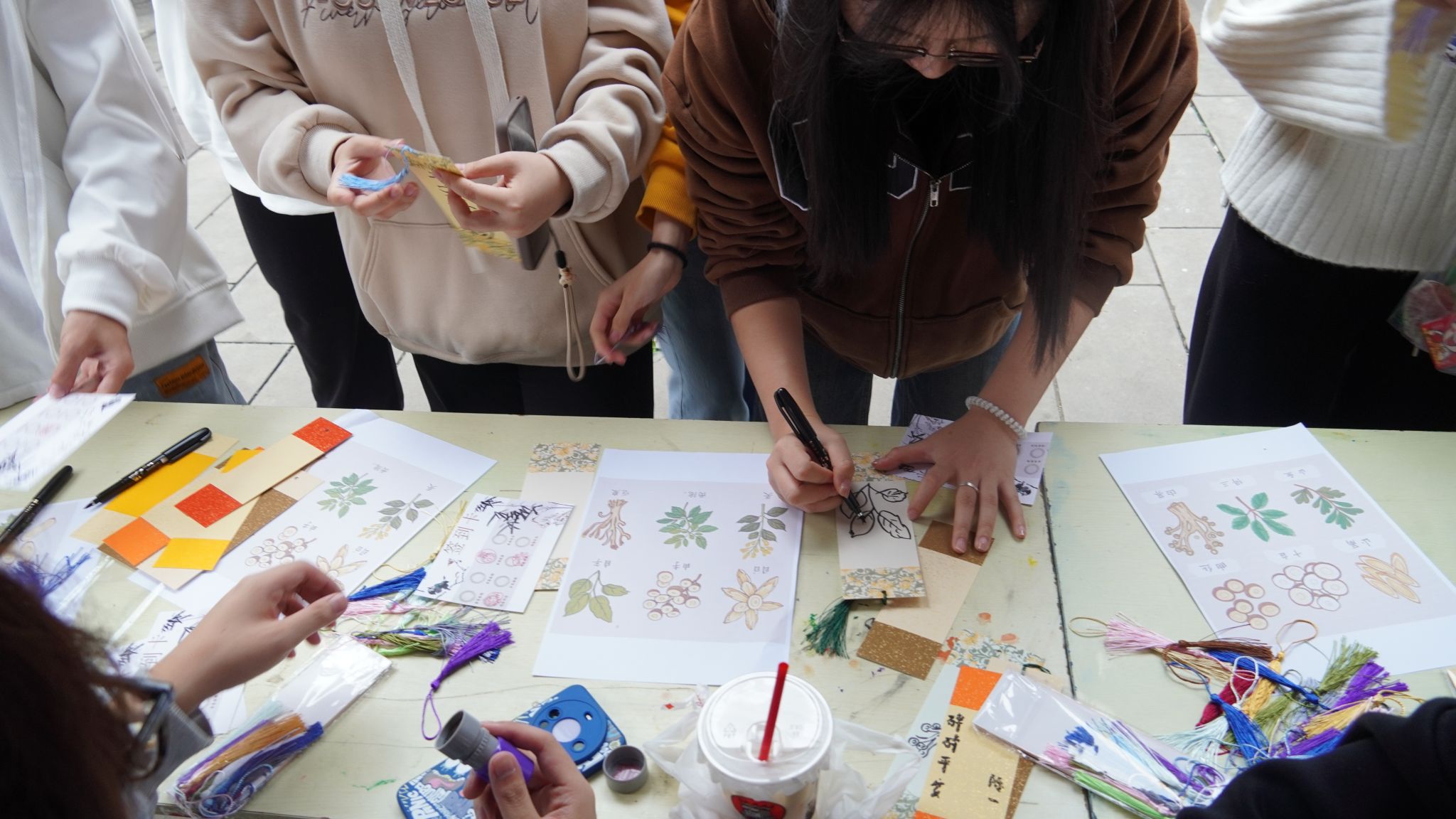 趣味养生区调动起同学们的动手能力。在这里同学们是“调香师”,是“灵魂画手”,是“养生手艺人”。活动乐趣在于“身临其境”。他们亲手挑选中药材,搭配出属于自己的独特香囊,药香四溢。他们拿起画笔,在精美的书签上描绘出中药材的简笔画,将中药文化与艺术之美完美融合。他们制作出一把把精致的养生锤,享受手作之趣。