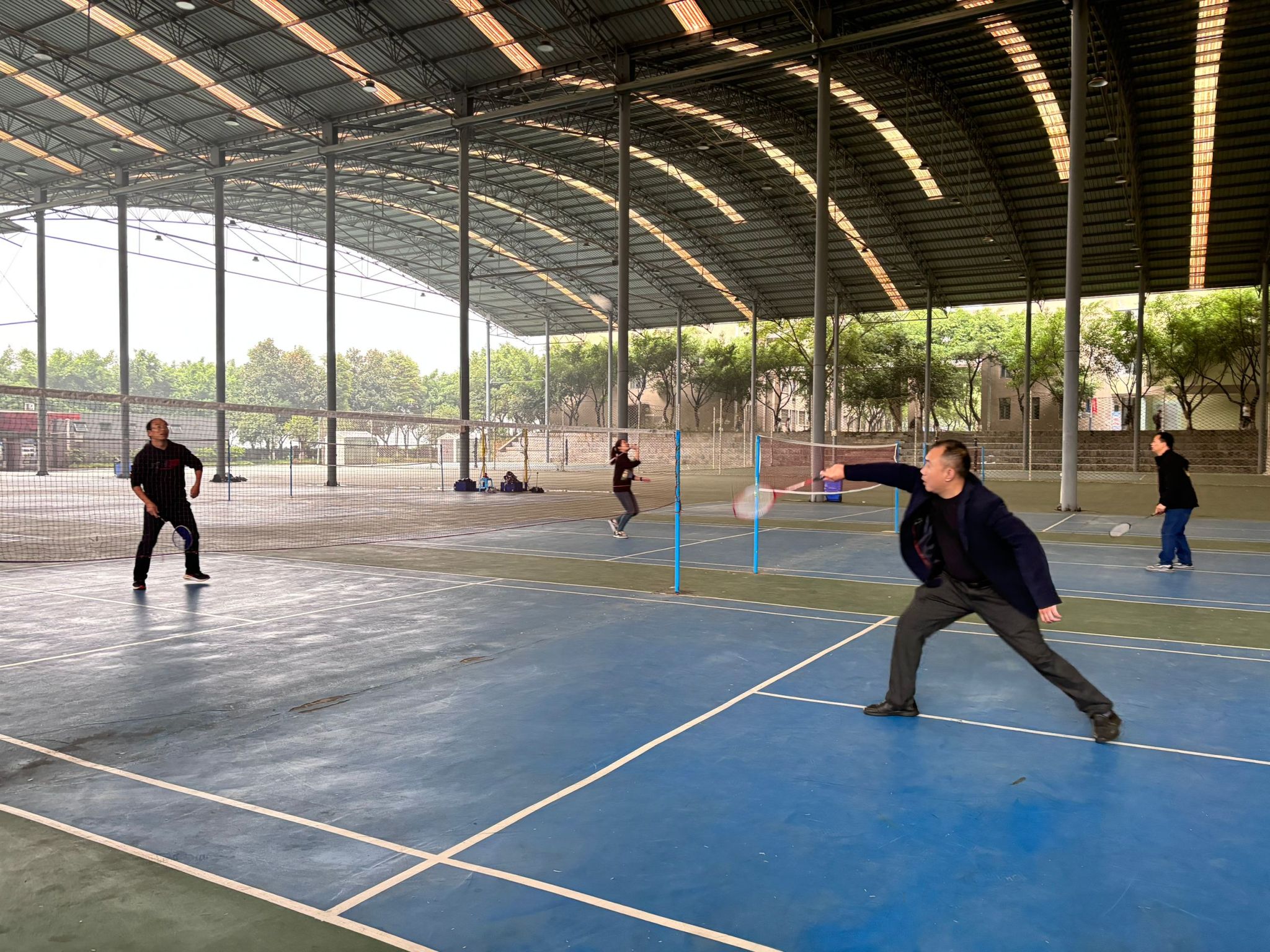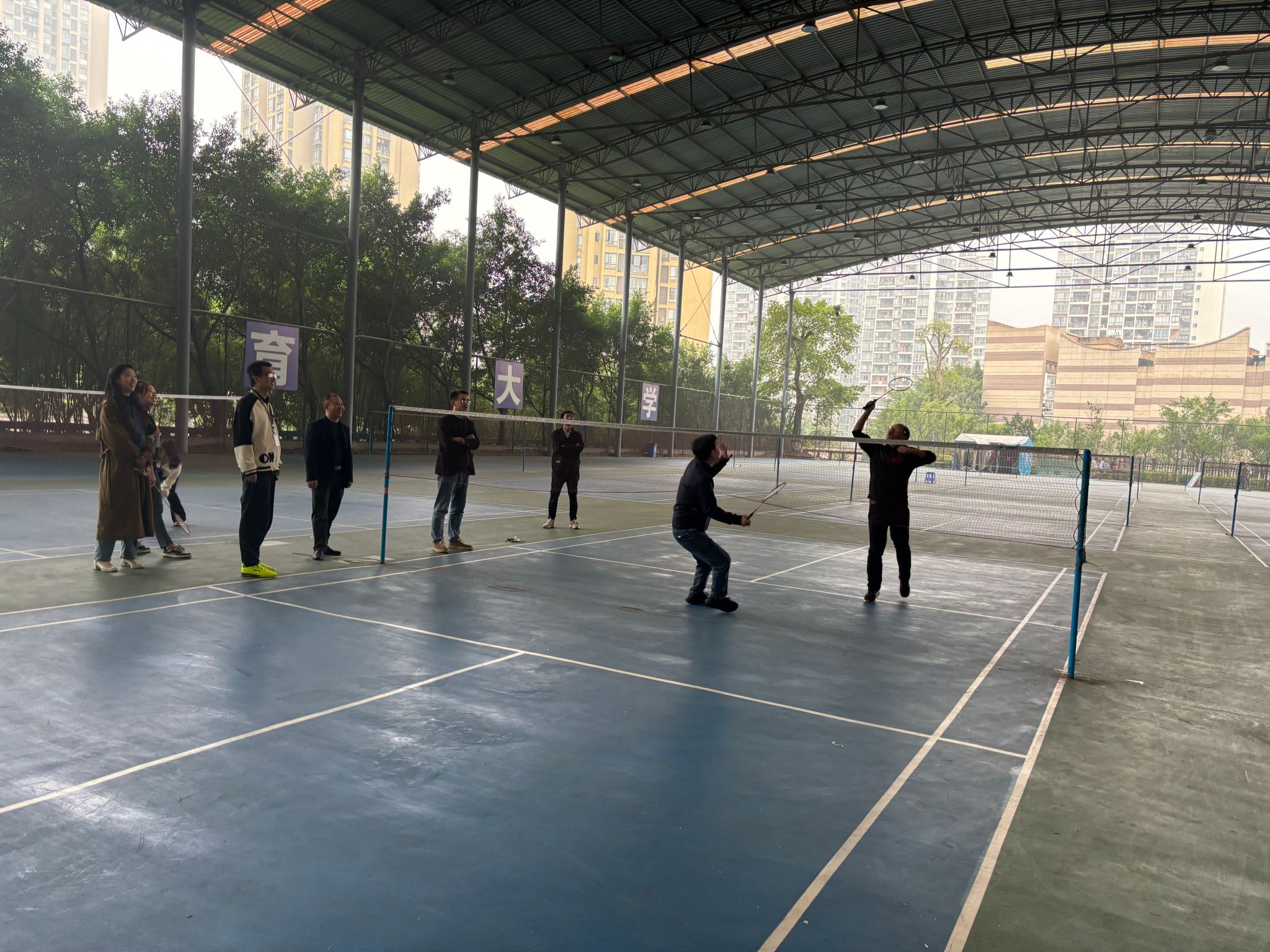 为通过竞技运动的方式,促进教师间的交流与合作,提升教师的身心健康,分泌多巴胺,释放教师身心压力,打造积极向上的团队氛围。教工第二工会小组双体软件精英产业学院特于2024年11月12日在我校风雨篮球场组织开展本次“羽你相约,精彩羽共”教工工会羽毛球赛。