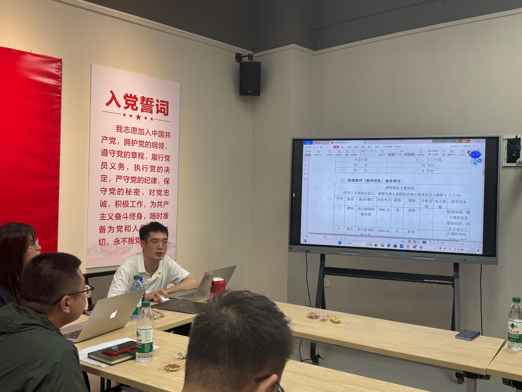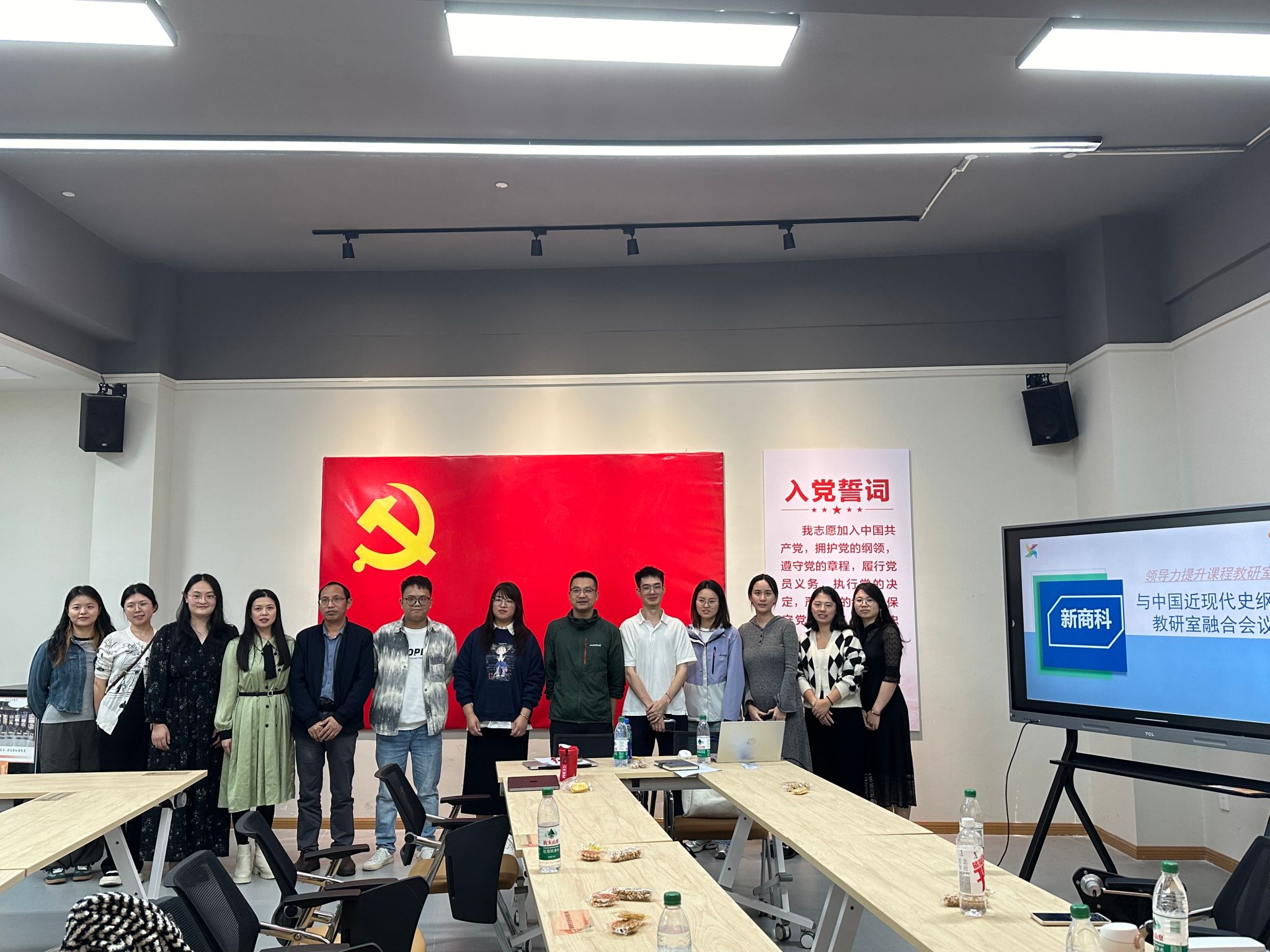 浇花浇根,育人育心,立德树人,思政为先。为贯彻落实《重庆移通学院2024年教育教学重点工作计划(移通〔2024〕52号)》文件精神,推进思政课程与课程思政建设同向同行,10月23日下午16点30分,马克思主义学院中国近现代史纲要教研室与新商科教学部领导力提升课程教研室于南湖书院举行了一场交流融合会,共同探讨如何搭建课程思政教学案例库。此次会议由中国近现代史纲要教研室主任李阳老师和领导力提升课程教研室主任王力东老师主持,两教研室教师代表参加。