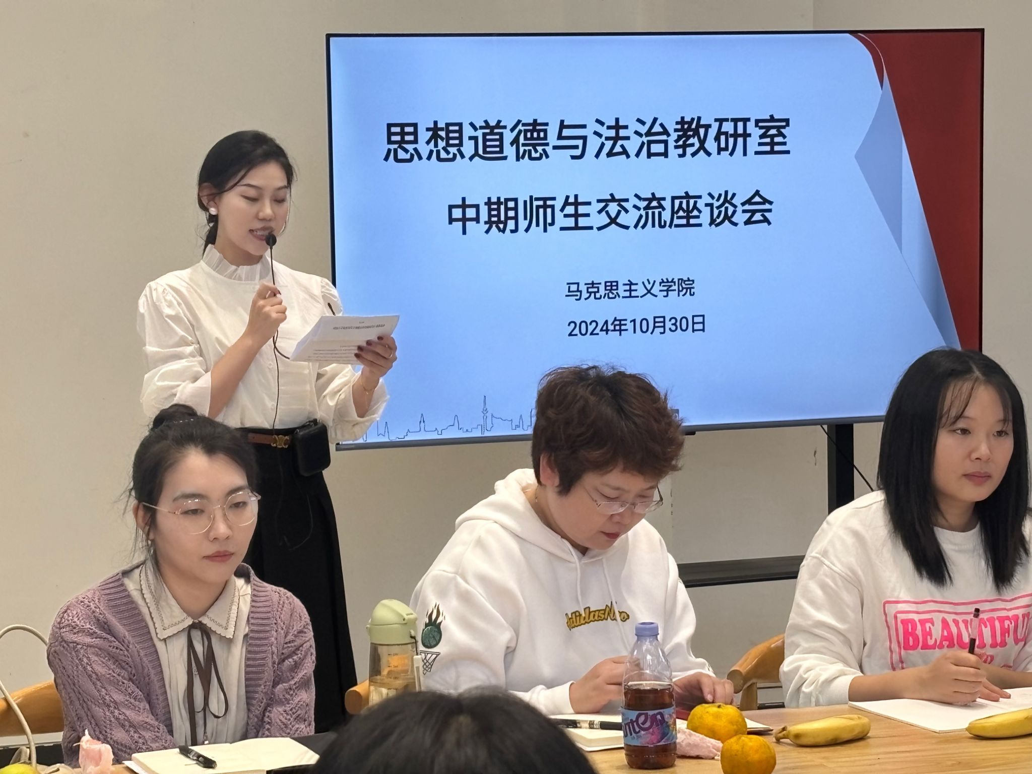 为增进师生之间的交流,了解学生在课程学习过程中的想法和问题,进而改进教学方法、提升教学质量。2024年10月30日下午,马克思主义学院思想道德与法治教研室在天渠110会议室开展了中期师生交流座谈会,会议由胡春香老师主持,思想道德与法治教研室全体教师以及2023级、2024级部分学生代表参加。