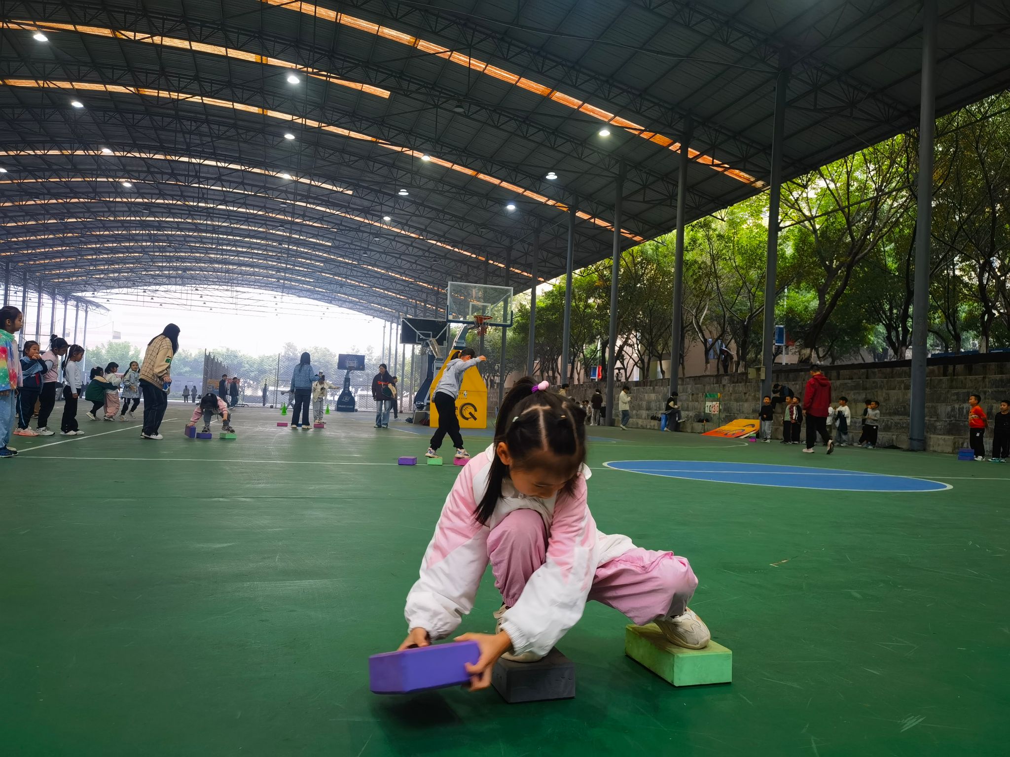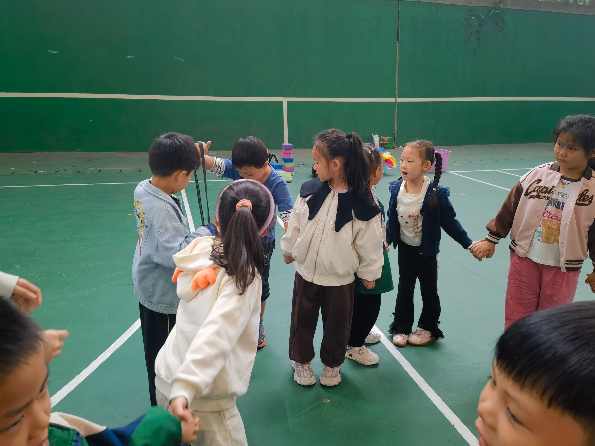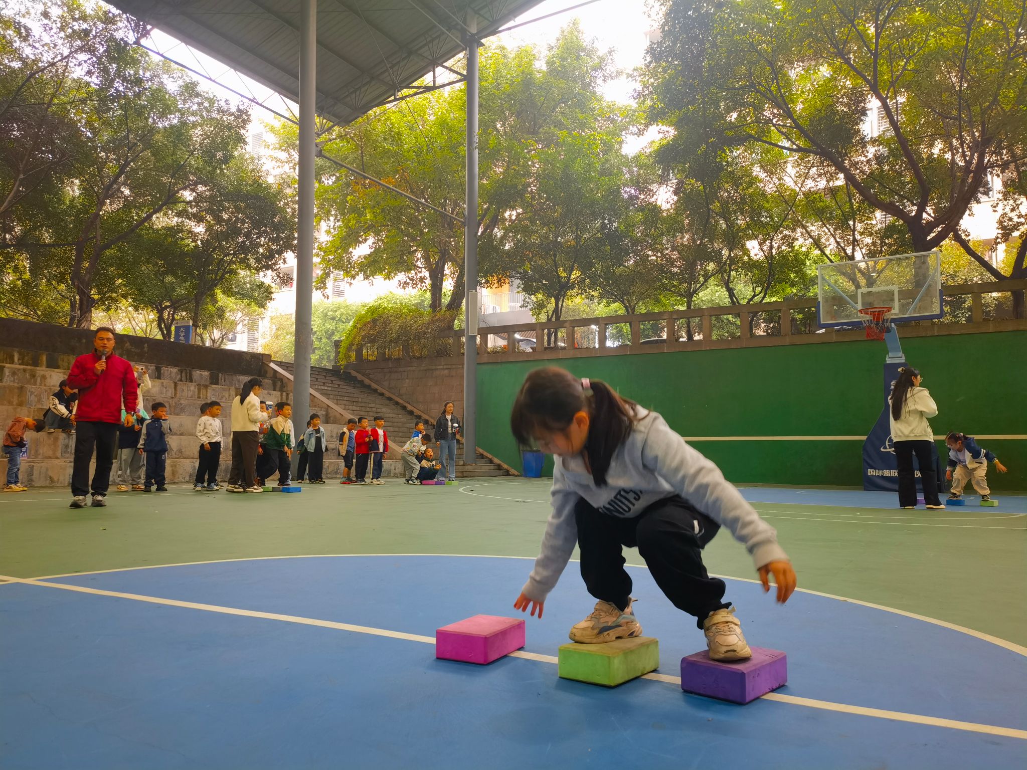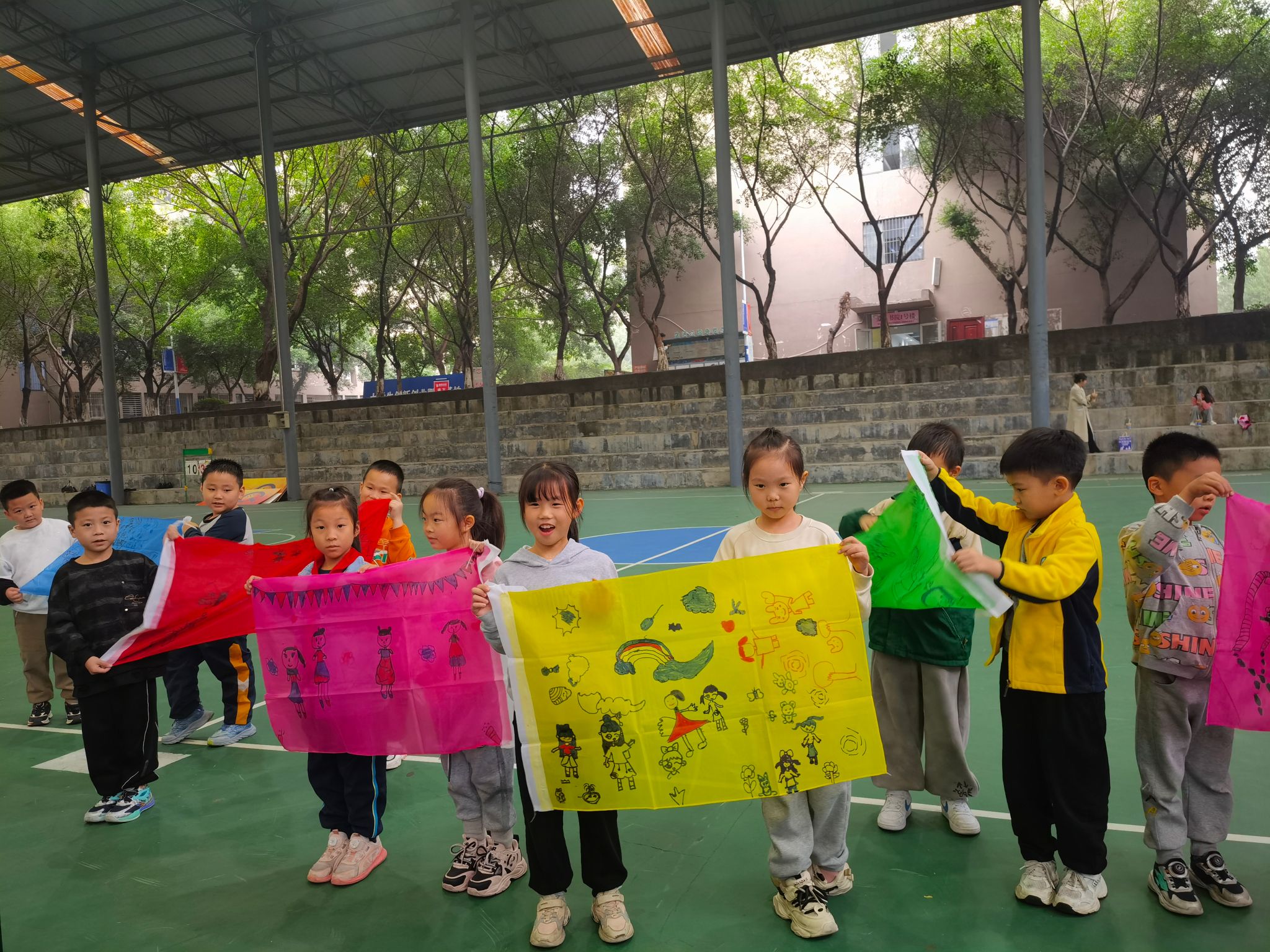 在重庆移通学院和新华小学老师们的带领下,小朋友们在9点30分参观到了风雨球场,并开始了一系列充满乐趣与挑战的活动。