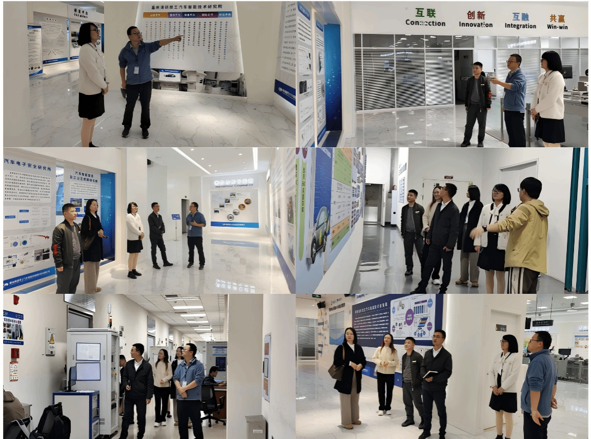 在参观环节,学院一行在企业工作人员的带领下,深入智慧工厂设计研发中心,先后参观了重庆清研理工研究院、重庆清研理工汽车检测服务有限公司、重庆清研理工电子技术有限公司。展示了一系列自主研究开发的设备和技术应用场景,每一个环节都彰显出科技与创新的力量。老师们纷纷表示,这样直观的体验将极大地帮助他们在课堂教学中向学生传达复杂的专业知识,让学生对未来的工作环境和工作内容有更清晰的认识。
