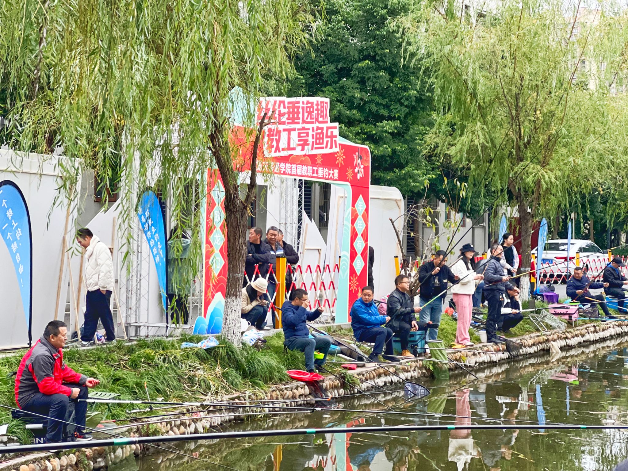 比赛正式开始后,教职工们纷纷各显身手,钓竿在他们手中仿佛被赋予了鲜活的生命,每一次抛竿皆是对耐心与技巧的严峻考验。他们或身姿挺拔地站立,或悠然自得地安坐,时而全神贯注地凝视着平静的水面,时而与身旁的同事轻声交流,每个人都尽情沉浸在钓鱼的独特乐趣之中。平静的水面上偶尔泛起的层层涟漪,既是鱼儿上钩的微妙信号,亦是令教职工们心跳陡然加快的激动时刻。