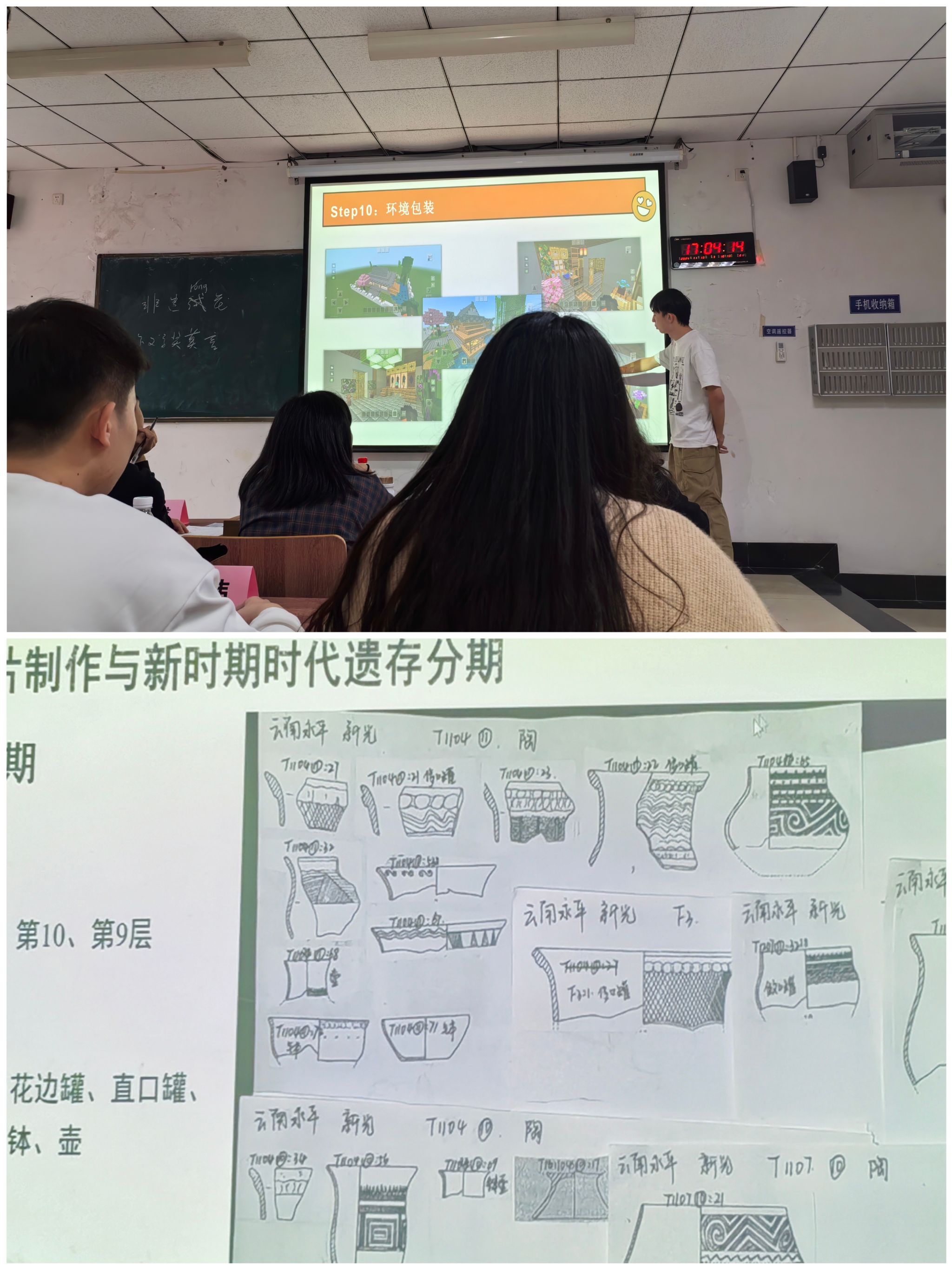 在随后的交流环节中,四川师范大学的曾傲同学以“zao房子”为主题,分享了自己对古建筑的深刻思考;尚艺纯同学则用专业的术语及数据,为大家介绍了云南省大理州永平县新光遗址的陶器,引发了大家对技术、创新等话题的热烈讨论。师生们积极提问、各抒己见,在思想的交锋中进一步升华了对传统文化相关问题的理解与认识。