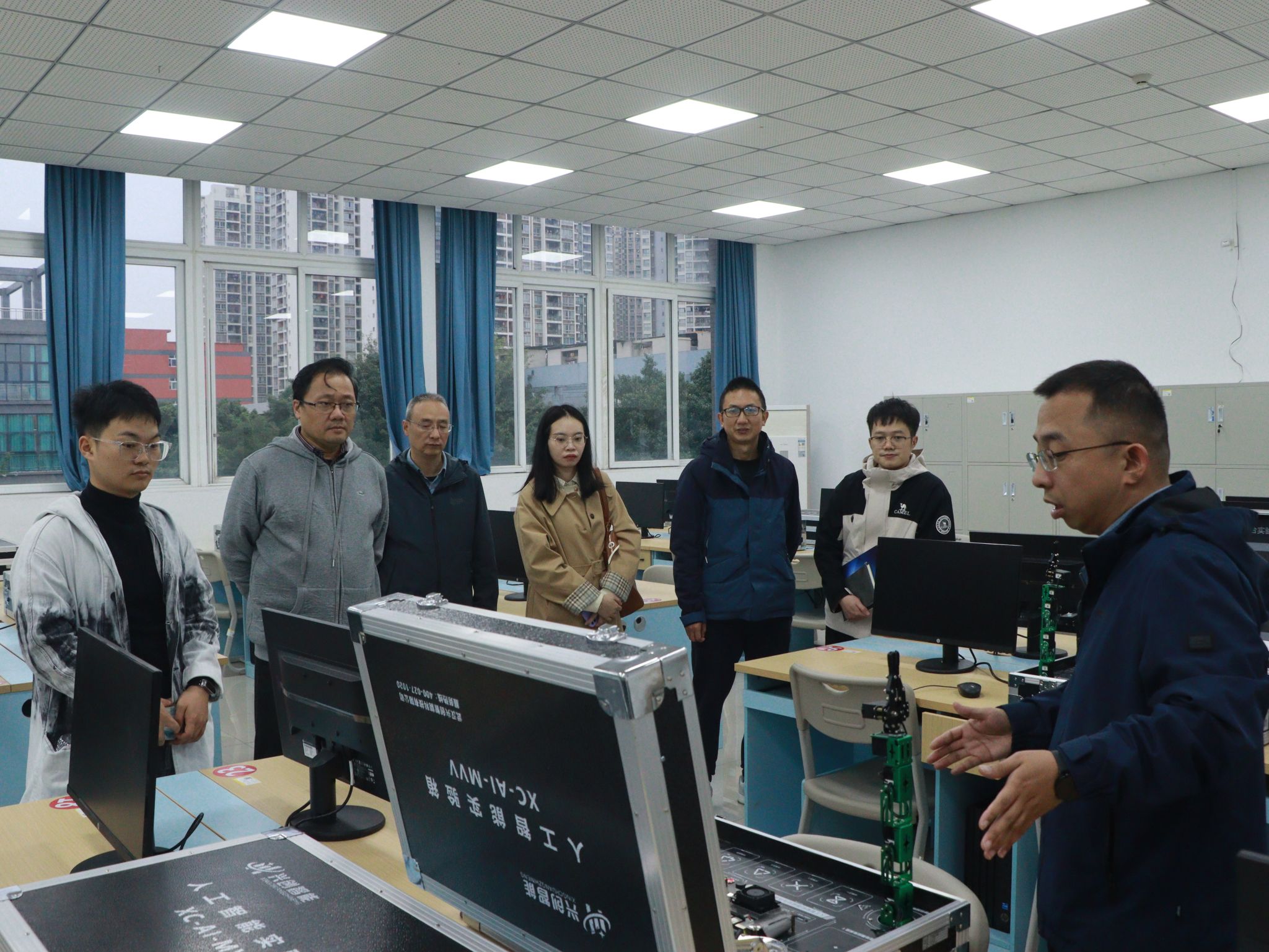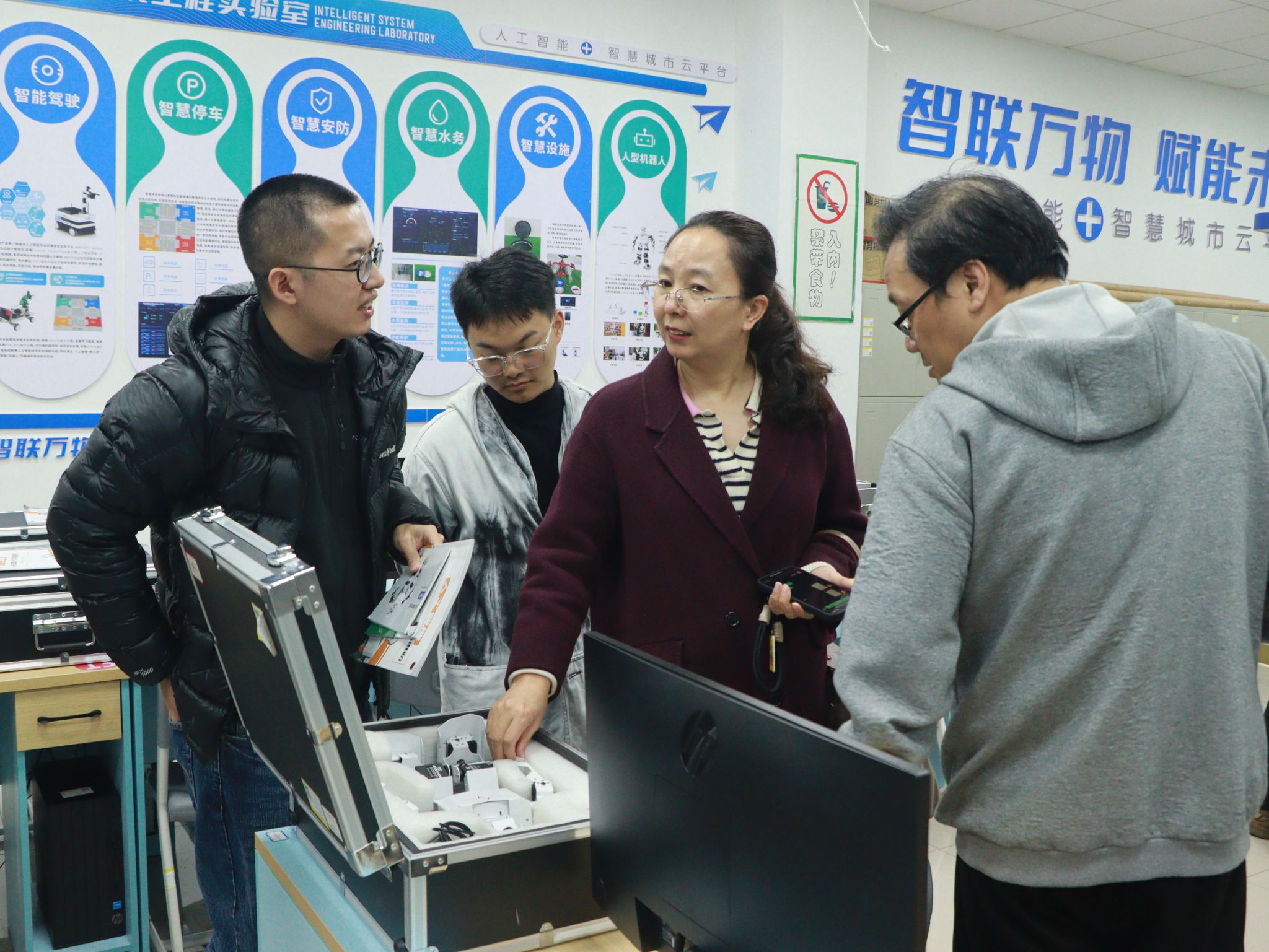 会议结束后,冯文果老师带领来访人员参观人工智能专业的的智能系统工程实验室、嵌入式实验室,并演示了智能交通、人形机器人、智慧农业、垃圾分类等应用板块,学校在人工智能专业的建设和投入以及取得的成果方面得到了与会人员的一致称赞。