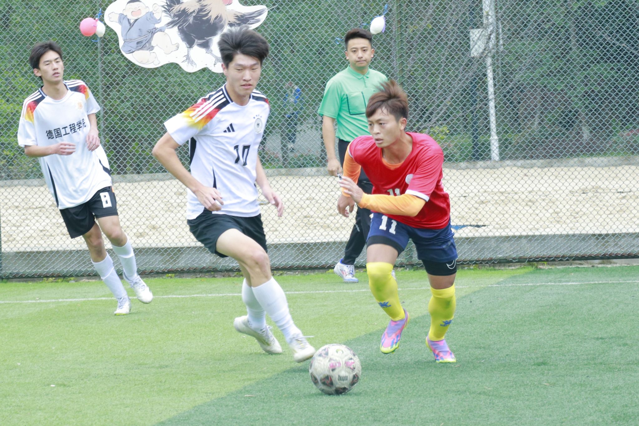 随着裁判的一声哨响,比赛正式开始。智能工程学院的球员们迅速进入状态,他们像猎豹一样在球场上穿梭,寻找着进攻和防守的最佳时机。在中场,双方球员为了争夺控球权展开了激烈的对抗。智能工程学院的球员们凭借出色的预判和反应速度,多次成功抢断对手的传球,为球队的进攻创造了有利条件。
