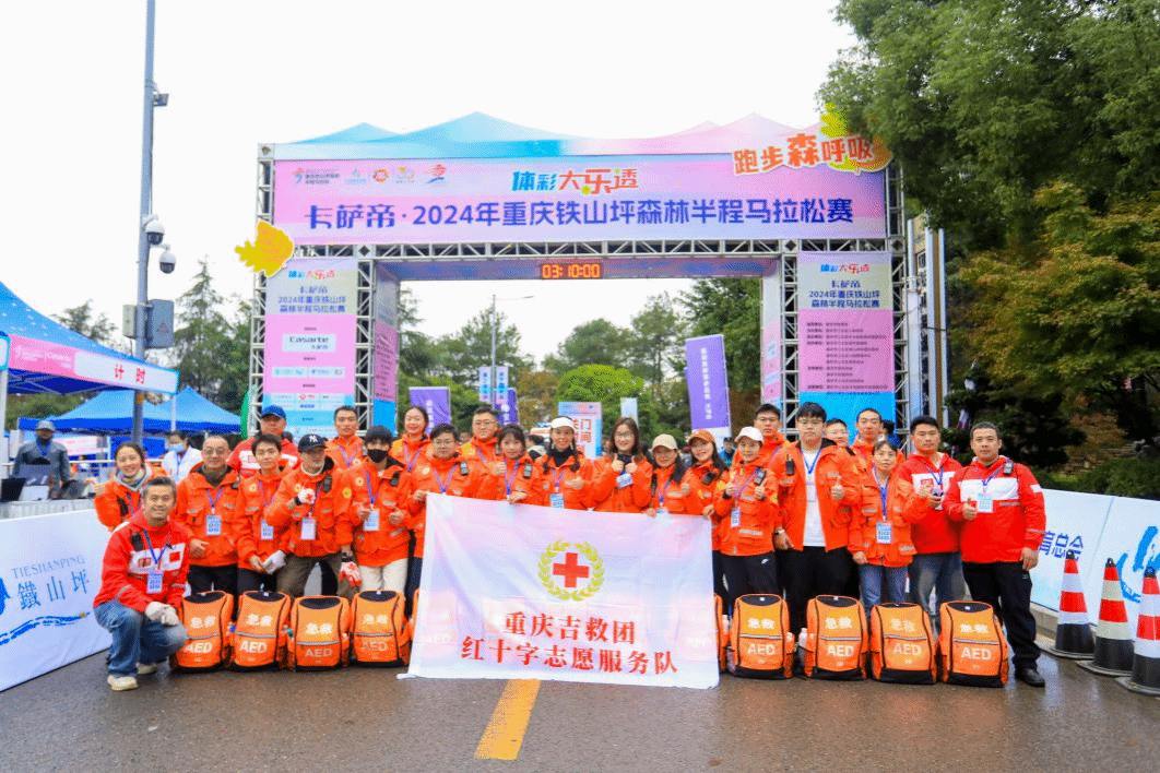森声不息,微笑加油!2024年11月17日重庆铁山坪森林半程马拉松赛鸣枪开赛,本次赛事招募了50余名急救志愿者。“10年森情”,自己与吉救团的一周年纪念,每一场的马拉松赛道都不全是专业医生,但却总面对死亡率极高的突发病症:心脏骤停。虽然只是医学界的“边缘人”,却每每从死神手里抢回生命。