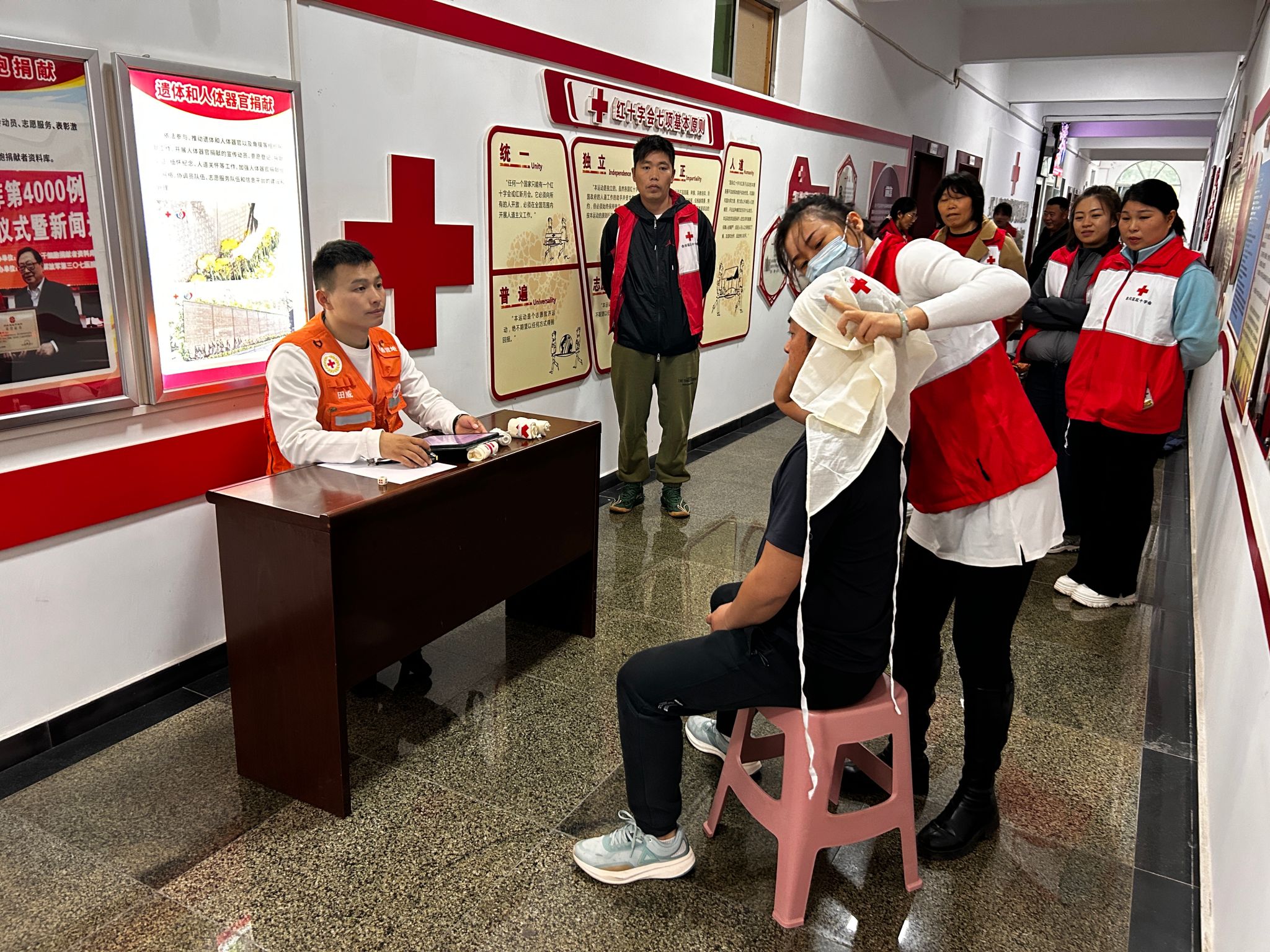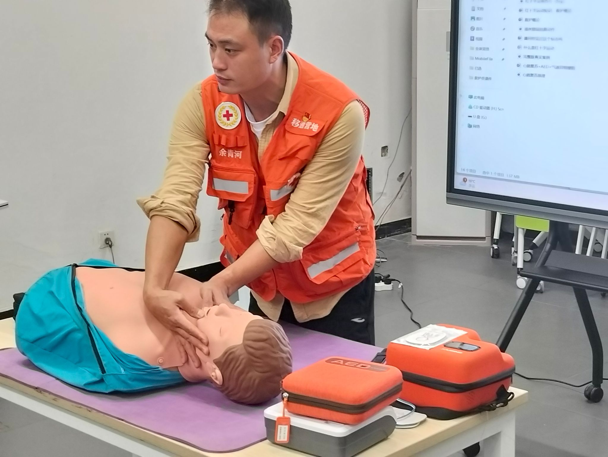 培训由合川红十字会的专业师资团队授课,邀请了重庆移通学院竞技体育中心党支部余青河和田威两位老师,他们对应急救护有着丰富的教学经验。在为期两天的课程里,系统全面地涵盖了急救基础理论知识,包括红十字基础知识、急救的基本原则、常见紧急情况的判断等。同时,重点聚焦于心肺复苏这一关键技能,详细讲解并实操演练按压位置、深度、频率等要点,以及人工呼吸的正确方法与配合节奏。在创伤包扎教学中,针对不同部位、不同类型的伤口,如头部包扎、四肢骨折固定等,一一进行示范与指导,让教师们熟练掌握包扎技巧。此外,对常见急症如中暑、癫痫等的处理方式也进行了讲解示范。