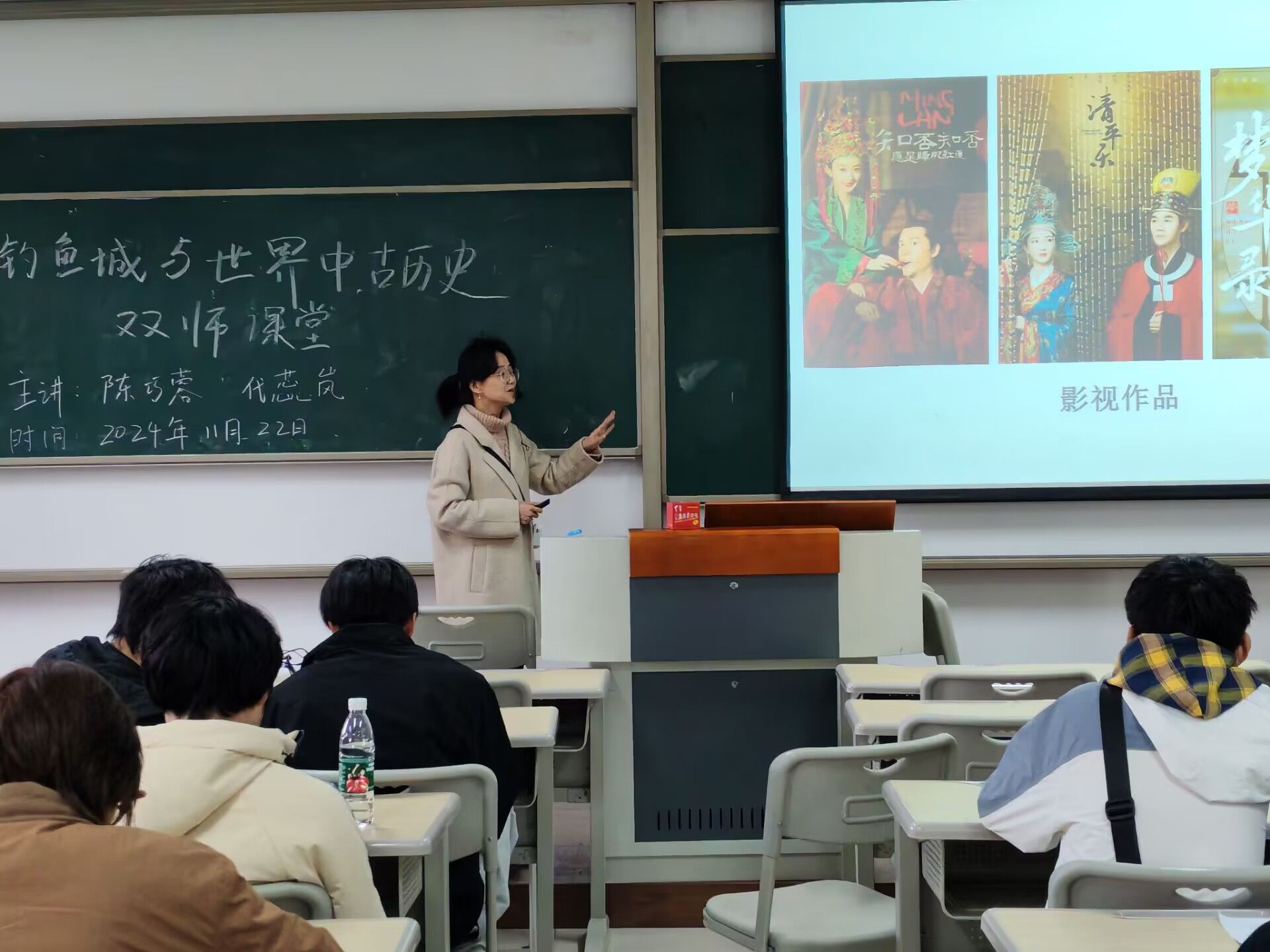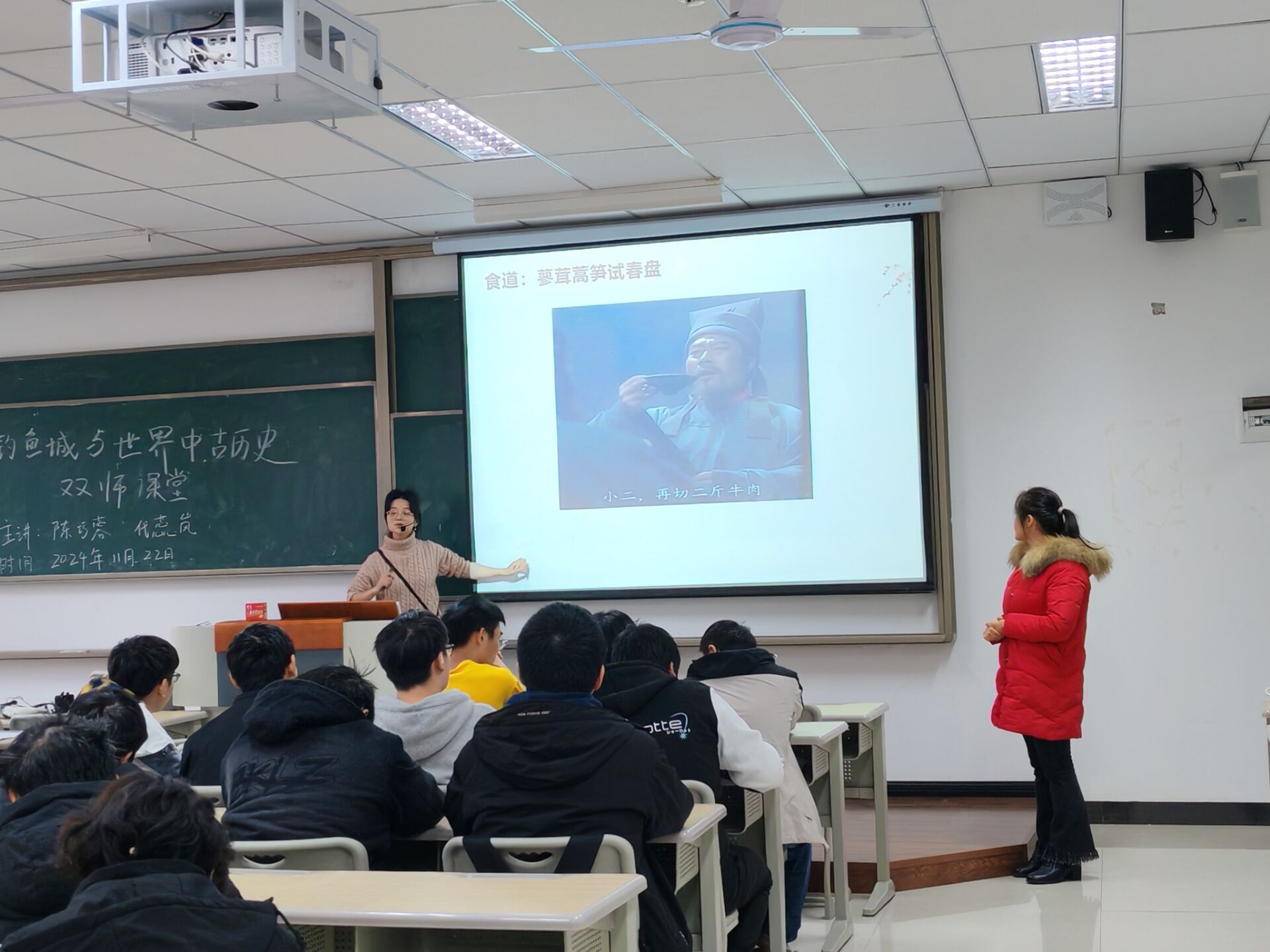 11月22日上午,地域文化与城市发展研究院《钓鱼城与世界中古历史》课程主讲老师陈巧蓉邀请实训中心代蕊岚老师于在第九教学楼307教室,共同开展了一场别开生面的双师课堂教学活动。通过生动有趣的互动教学,带领学生们通过诗词了解了宋代人的生活,培养学生的跨学科思维。