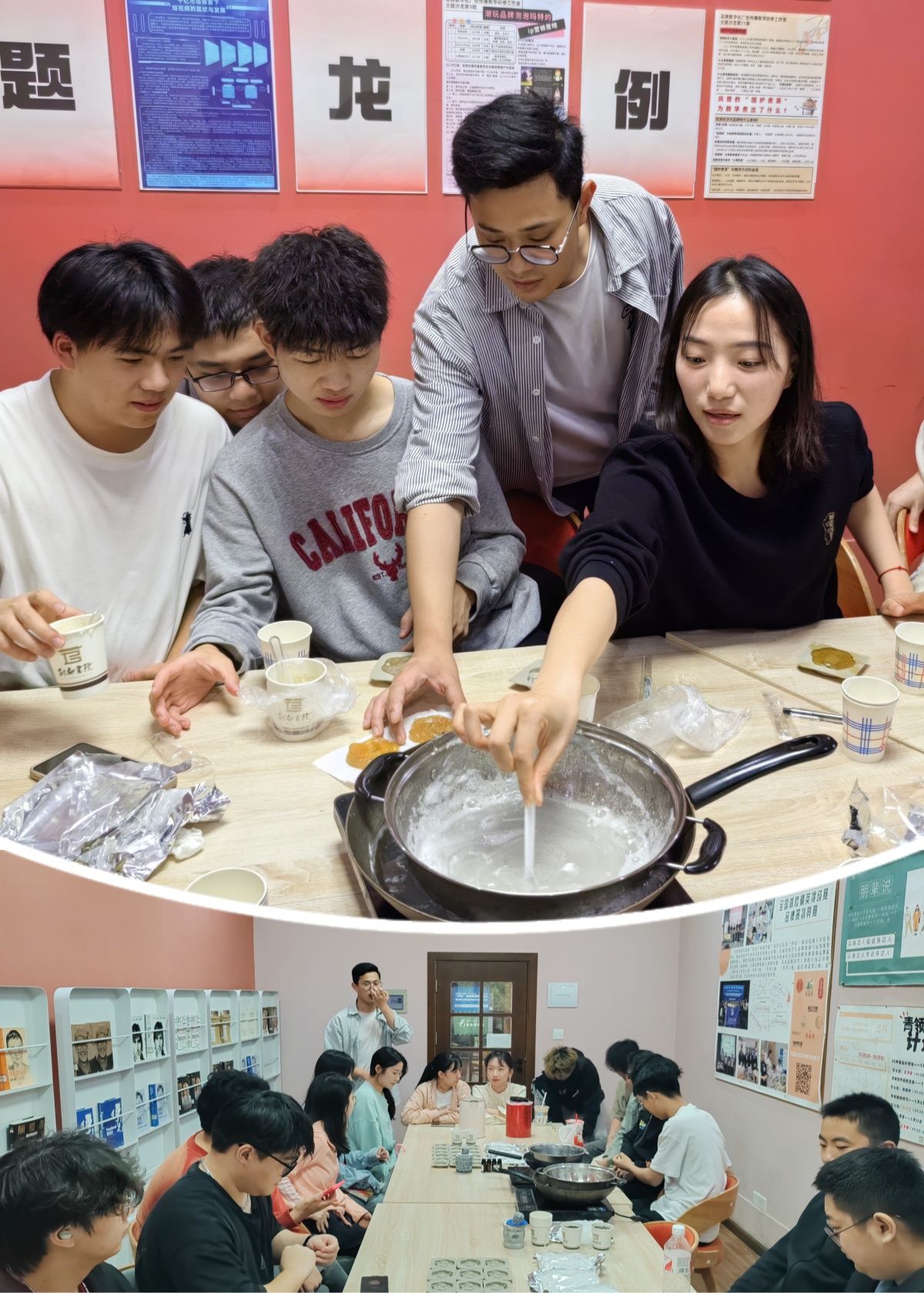 一间食堂藏人间烟火,一味美食记录温情暖意。为进一步加强异科师生间的交流,提高学生团队合作能力,增进师生情谊。异科导师林森老师围绕早餐制作、趣事分享、情感交流等方面开展了“零距离”师生早餐会活动。交流过程中,张礼芝同学提出了在考研、就业以及未来规划方面的一些困惑。对于她的疑问,林老师给出了中肯且实用的建议:首先,要对自己有清晰的认知,了解自己的兴趣、优势和目标;其次,放平心态,减少外界因素对自己的影响,保持一颗平和的心态,不要过分在意他人的评价,专注于自己的节奏和步伐即可。