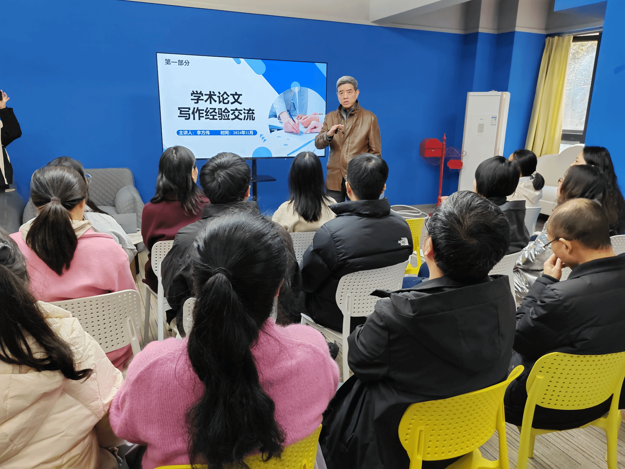 会上,李方伟教授首先进行了《学术论文写作经验交流》的专题分享和指导。他从学术论文的概述入手,详细阐述了学术论文的重要性和基本特点。随后,李教授深入探讨了学术论文的选题技巧和前期资料收集,强调了选题的新颖性、实用性和可行性。在学术论文撰写部分,他结合自己多年的撰写学术论文经验,从结构安排、语言表达、数据引用等多个方面进行了细致讲解,并分享了一些实用的写作工具和资源。最后,针对学术论文投稿这一关键环节,李教授详细分析了投稿流程和常见误区,为与会者提供了宝贵的投稿建议。