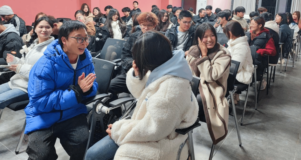 2024年11月21日晚上,陈明波带领异科导师的学生和杨倩组的女生在别都书院的四维空间举行了“大胆表白,寻求爱情”的联谊活动。活动旨在为单身男女学生提供一个轻松愉快的社交平台,让他们在游戏和互动中找到心动的另一半。无论是通过一首情歌,还是一段真挚的告白,都是追求爱情的勇气展现。我们相信,真爱值得被大声说出来。